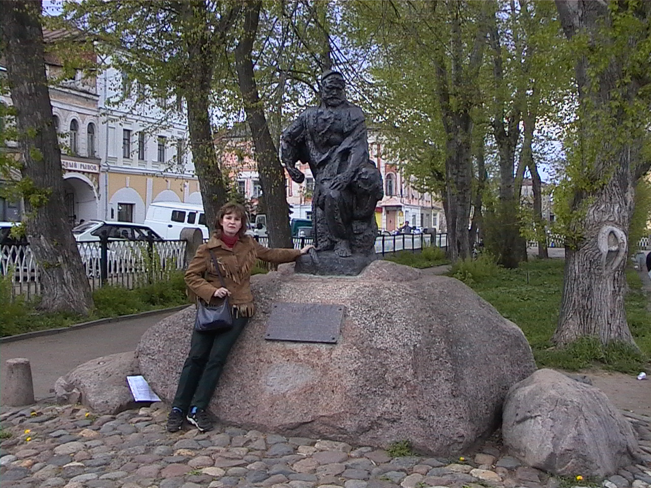 Много туристов только в самой главной достопримечательности – Спасском монастыре. Иностранцев – пропасть, даже торговцы сувенирами говорят на английском и французском, так их много. Кстати, цены там сильно не дешевые, посещение одного памятника – 30 рублей, мы взяли звонницу, выставку фарфора, Спасский собор и фотосъемку и это получилось 210 рублей, причем без всяких экскурсий. Сначала взобрались на звонницу, вид оттуда замечательный (см. фото), реки Волга и Которосль, город с церквами, море зелени. Супер. Потом зашли в Спасский собор осмотреть фрески, но, надо сказать, по сравнению с фресками в Ферапонтовом монастыре, они меня не сильно потрясли. А когда вышли из собора, то нас пригласили заглянуть на бесплатную фотовыставку «Семейные фото горожан», мы ее бегло осмотрели, вообще-то там и осматривать было нечего, но одна фотоидея нам понравилась. Под рубрикой «Мы родом из детства» был представлен фотомонтаж: на фоне холма с храмом (основа) размещены фигурки членов семьи, но всех приблизительно в одном детском возрасте от бабушек и дедушек до правнуков. Потом мы посмотрели исторический отдел в музее и выставку фарфора. Забавно, что в одном из залов музея смотрительница оказалась суперобщительная и заставила нас сфотографироваться с каретой градоначальника, с портретом этого градоначальника, ну и на закуску уж и с портретом Екатерины II.