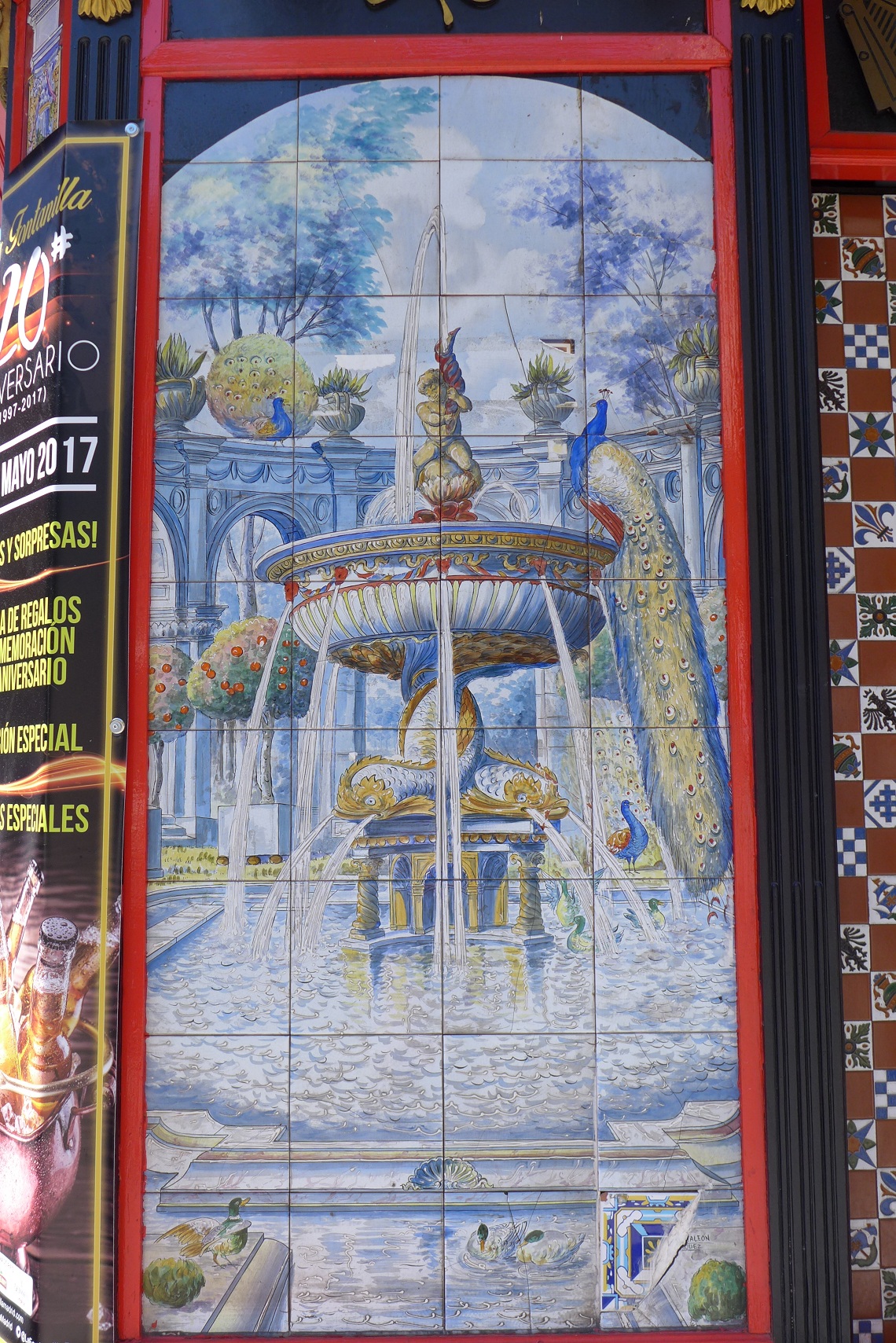 Напротив, на той же самой площади есть еще одна живописная таверна "La Fontanilla", но, к сожалению, практически вся обклеенная зазывными плакатами: