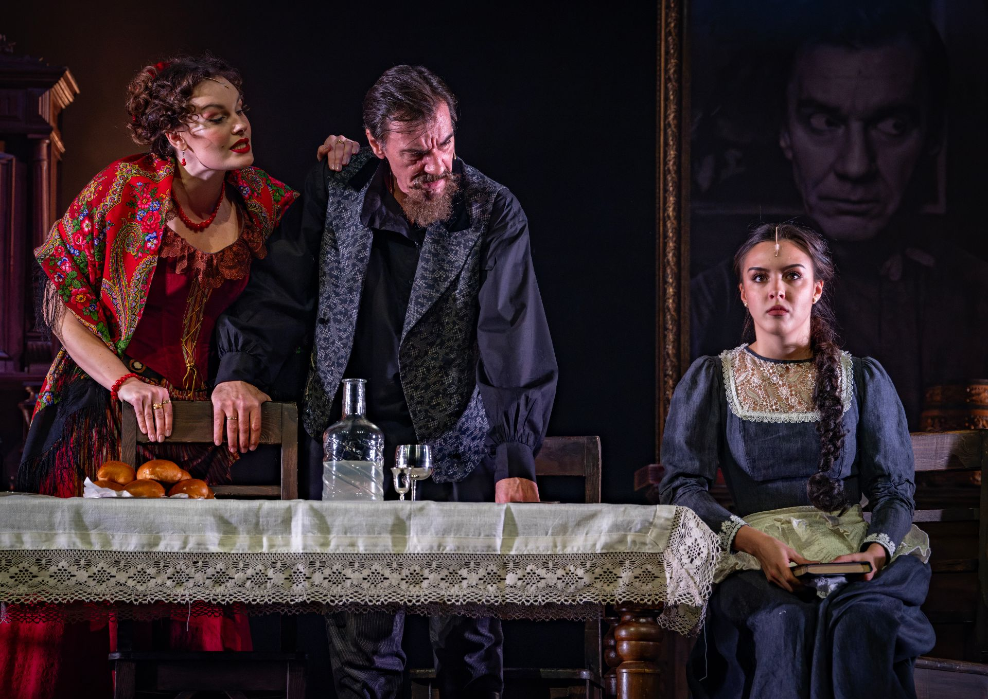Пару слов о самом спектакле. Он получился чудесным! Яркий, динамичный, было несколько музыкальных номеров в сопровождении оркестра, который скрыли за декорациями, а актёрский состав выше всяких похвал — обожаю Лагутина и Козий. Мне кажется, пара Вукола Ермолаевича и Евгении Мироновны в их исполнении прекрасна — оба героя получились с чертовщинкой, как и было задумано: "Улыбайся, дьяволи, а расчёт после".