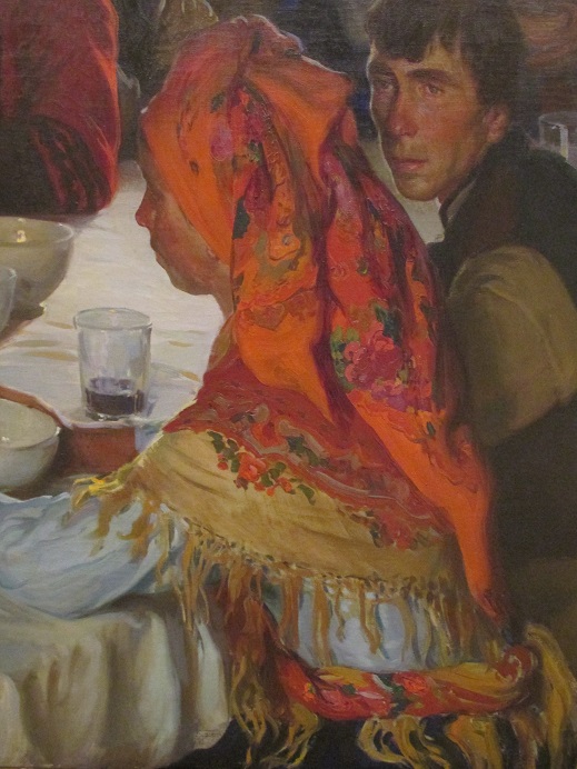 Краткое описание картины (перевод с испанского и английского) : "Любимой темой полотен Ф.А. де Сотомойора были привычки, обычаи и бытовые сцены жизни испанской Галисии начала 20 века...На полотне - свадебное застолье. Жених, невеста, их родственники, старый пастор в торжественной, нарядной, соответствующей событию одежде...."