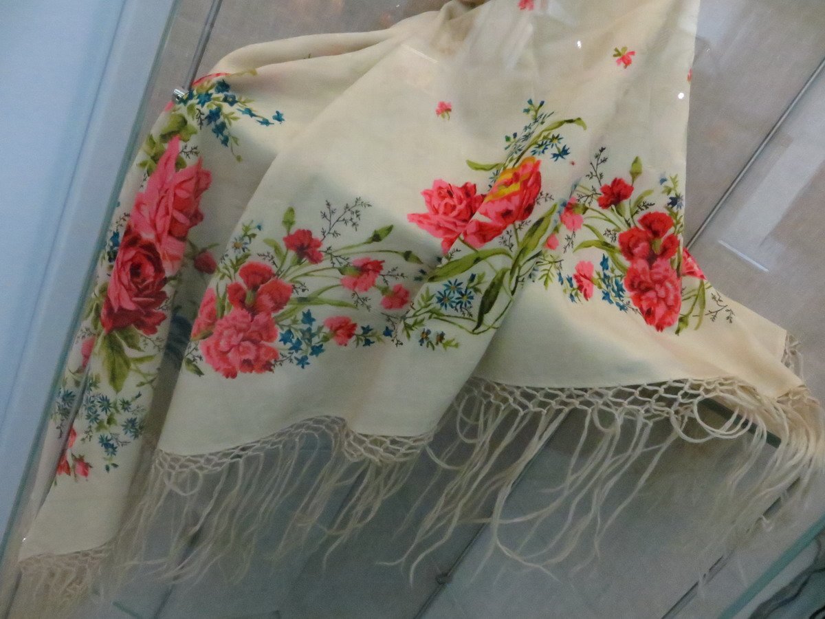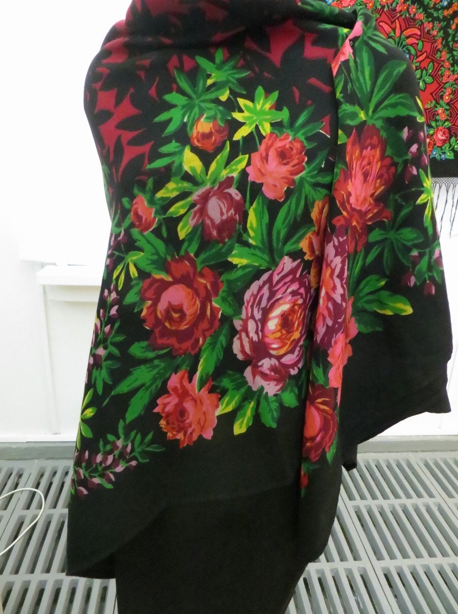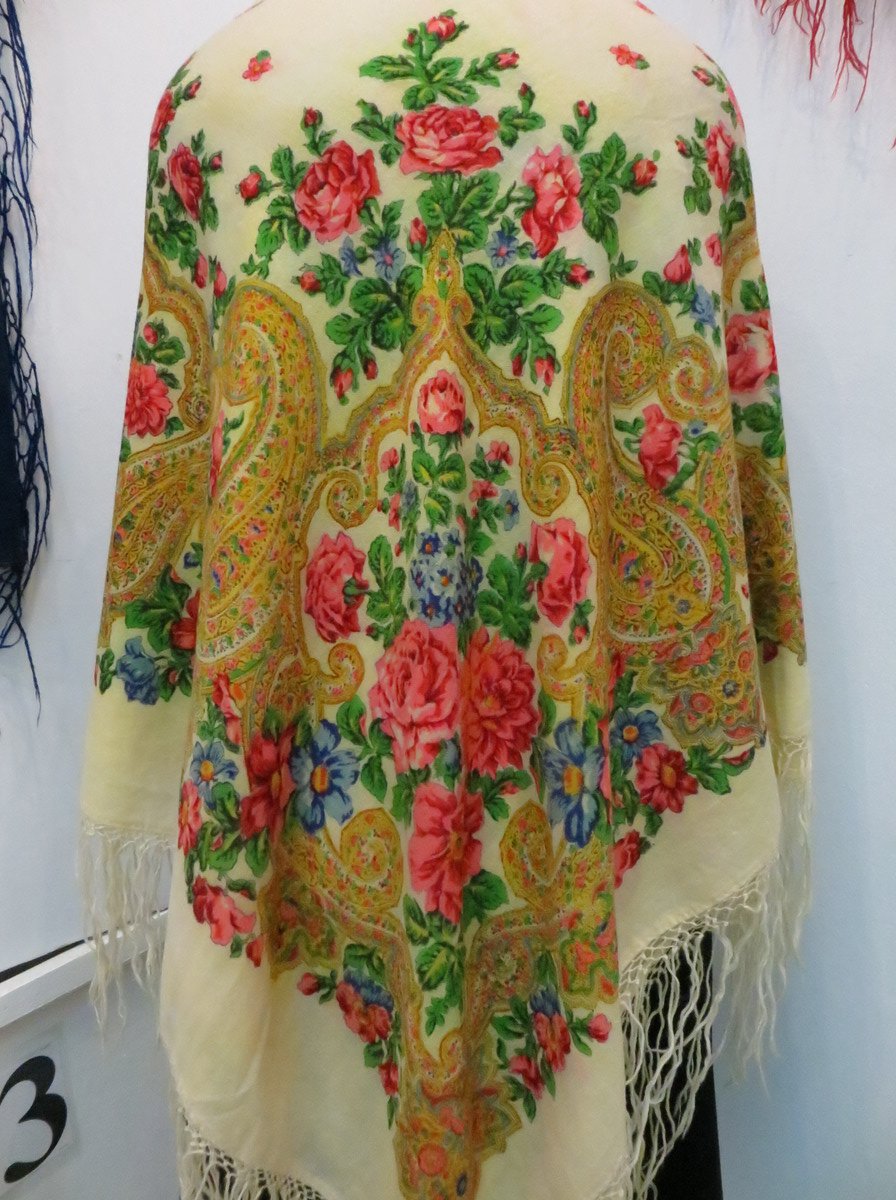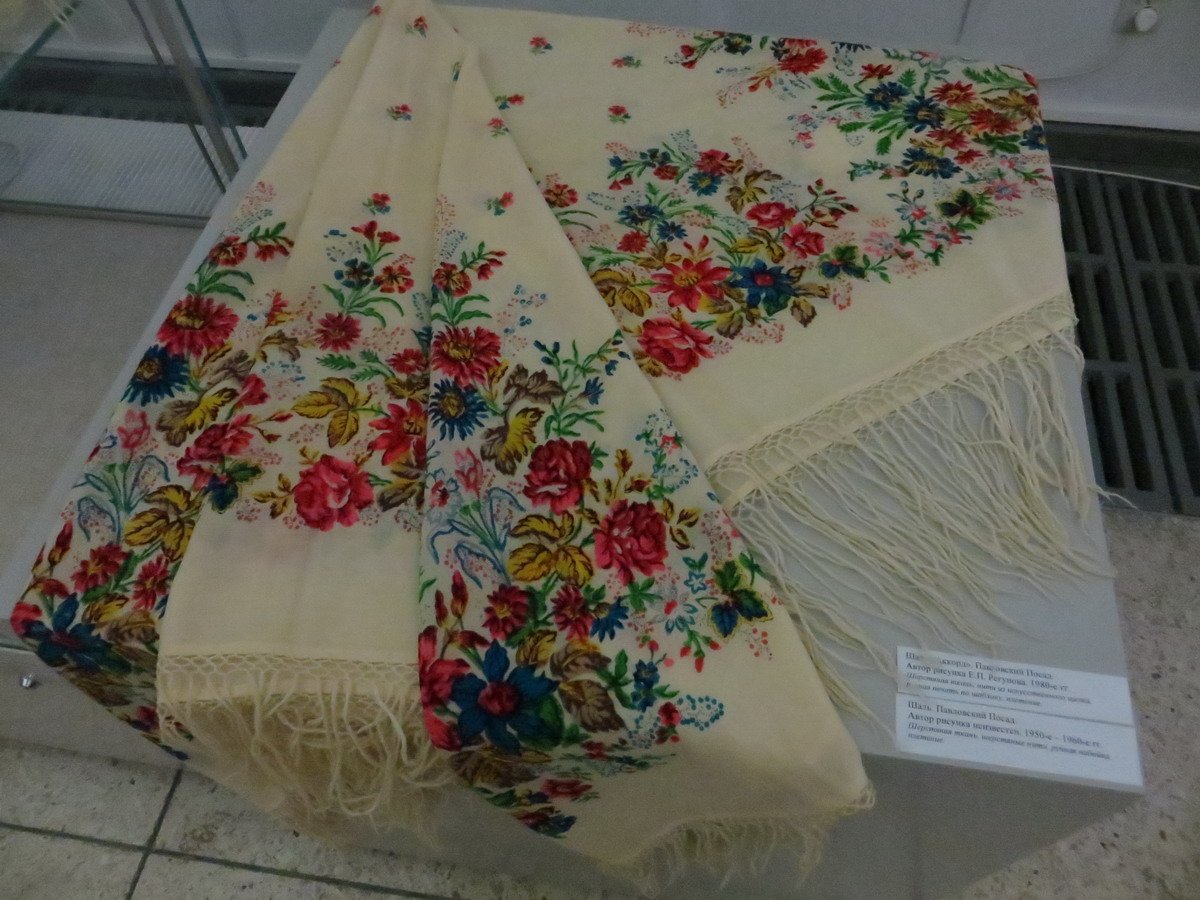 Красная шаль, к сожалению, лежала в витрине и высоко, поэтому снимок вышел зюмо некузявый.