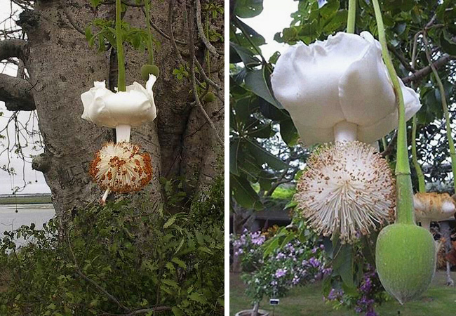 Так цветет баобаб – огромные цветки раскрываются ближе к вечеру и живут всего одну ночь. Утром они вянут и опадают.