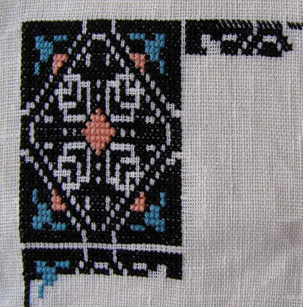 Не утерпела, сама сходила обновить географию в памяти - так и есть, совсем соседи, только Борщев километров так на сто с копейками от Румынии посевернее будет,- южное Подолье. А ежели чуть левее взять, к гуцулам в гости, там такого можно нарыть.. к каждом районе свои орнаменты и швы. Похожие диагонали попадаются, только гамма и швы более другие. (Кликните, чтобы почитать оффтопик)...