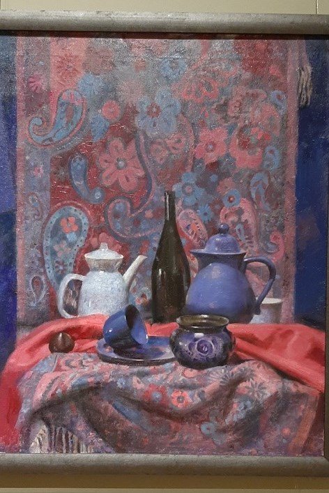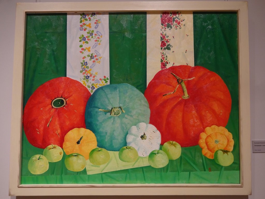 "Осенний вернисаж" в НГХМ. Наталья Павлова. Натюрморт "Яркий платок". Холст, масло.