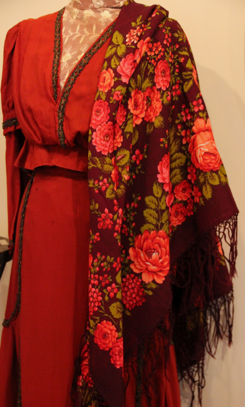 В далёком Солигаличе в музее на выставке есть платки. Мне их разрешили сфотографировать, в отличии от зала с портретами художника 18 века Григория Островского, в котором строго запрещено снимать портреты семьи Черевиных... (которые я все-таки на коммерческой основе засняла без права показывать их в интернете, но и за это им спасибо!)