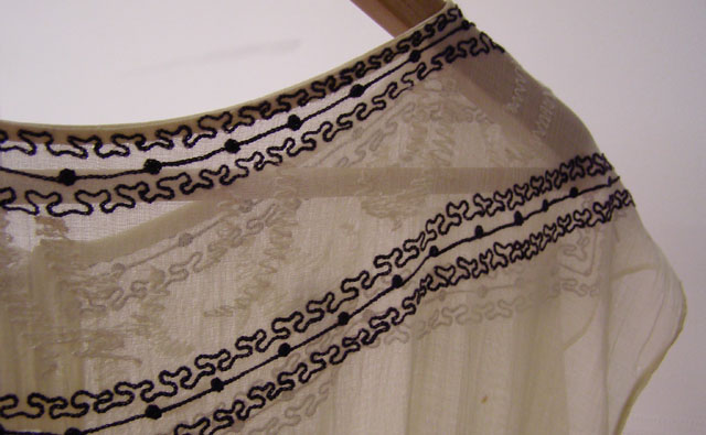 Этот экспонат рубежа XIX-XX веков, также в этой витрине находится пальто дизайна Коко Шанель (оно есть на предыдущей странице как раз), пальто Кристиана Диора и еще одно пальто из Росcии позапрошлого века. Также там есть пальто, сшитое из губки Vileda. Я сперва не могла понять, что за ткань такая))) Потом "дошло")). А два пальто имеют подсвеченные прожекторами места, прикоснувшись к которым вы активируете мониторы, демонстрирующие процесс пошива разных деталей пальто.. Это забавно, ведь обычно руками трогать ничего нельзя. Еще показывают небольшой рекламный фильм 60-х годов, срежиссированный Серджио Росси. Архивные фотографии, эскизы, "древние" журналы мод...eleka писал(а):Zhara , съёмка платная - 130 р. . Сходить можно - посетителей немного, большую часть составляли служащие и охрана, персонал очень любезный и выгодно отличается от персонала советской выучки других московских музеев...