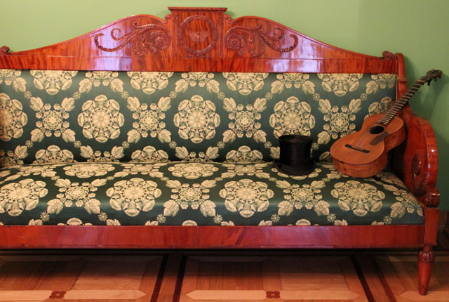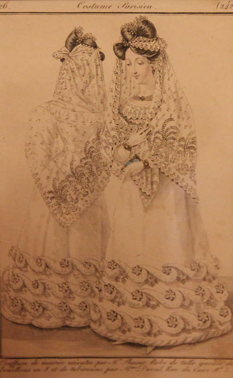 И ещё один "уголок"музея в пушкинском стиле. И картинка из журнала мод того времени, показывающая, как можно носить шаль.