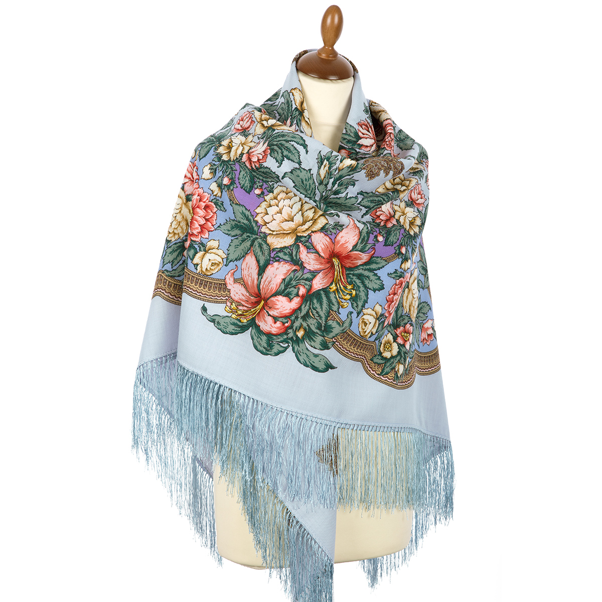 Павловопосадский платок" Весеннее утро" с синими цветами.