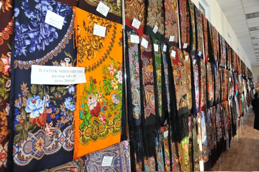 При увеличении фотографии виден ценник на шали БЕЛЫЕ РОЗЫ синего колорита - Цена 2860 рублей...???