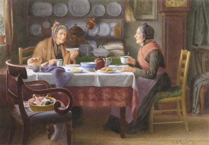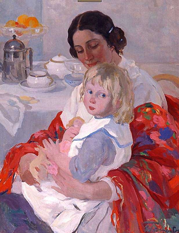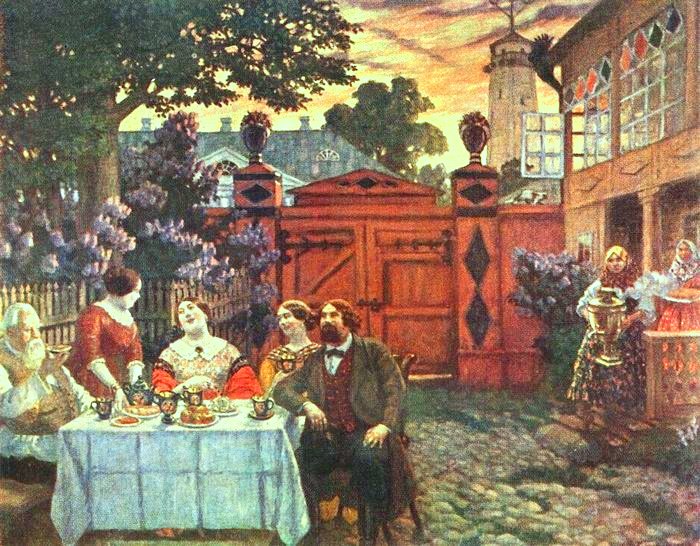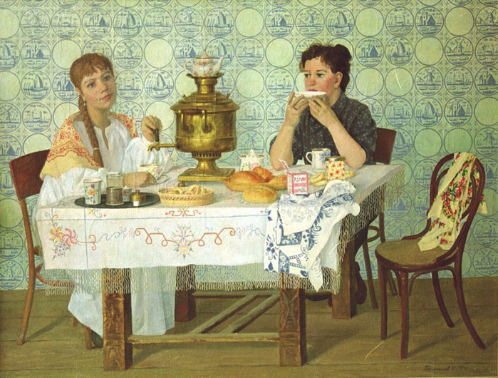 Картин,посвященных чаепитию и платкам,к сожалению,у меня мало.Может,кто-нибудь продолжит тему?