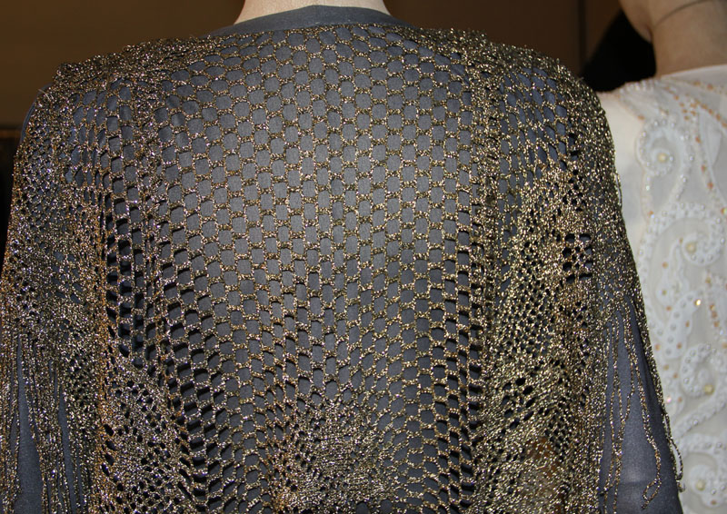 На выставке будут и эти два платья Валентины Толкуновой. Я сфотографировала концертное платье с вязаной шалью.