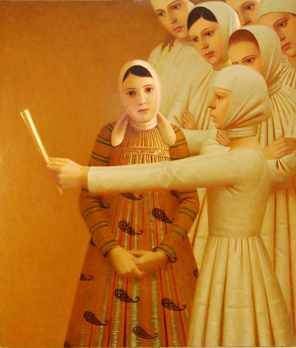 Однако, сколько художников “ищет связи между главными характерами и декоративными возможностями элементов одежды”. Красиво, глазу приятно, но какой контроль над разумом.. Отчего-то по контрасту вспомнился Малявин с его пастозными бабами и девками - вот где настоящий пожар и поэзия народного костюма