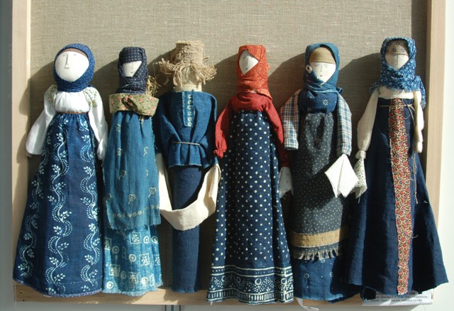 Возьму на себя смелость и добавлю к костюмам еще несколько фото кукол Елены Диковой. Она кубовую набойку делает сама