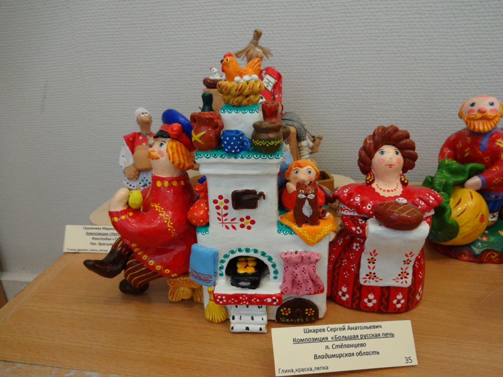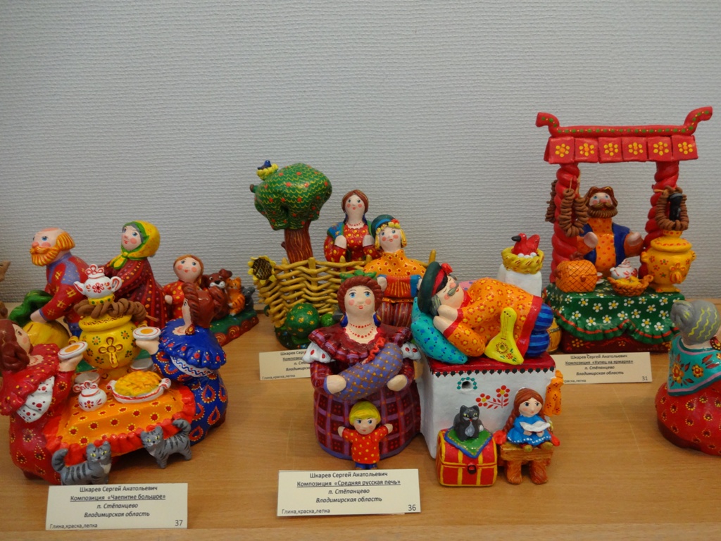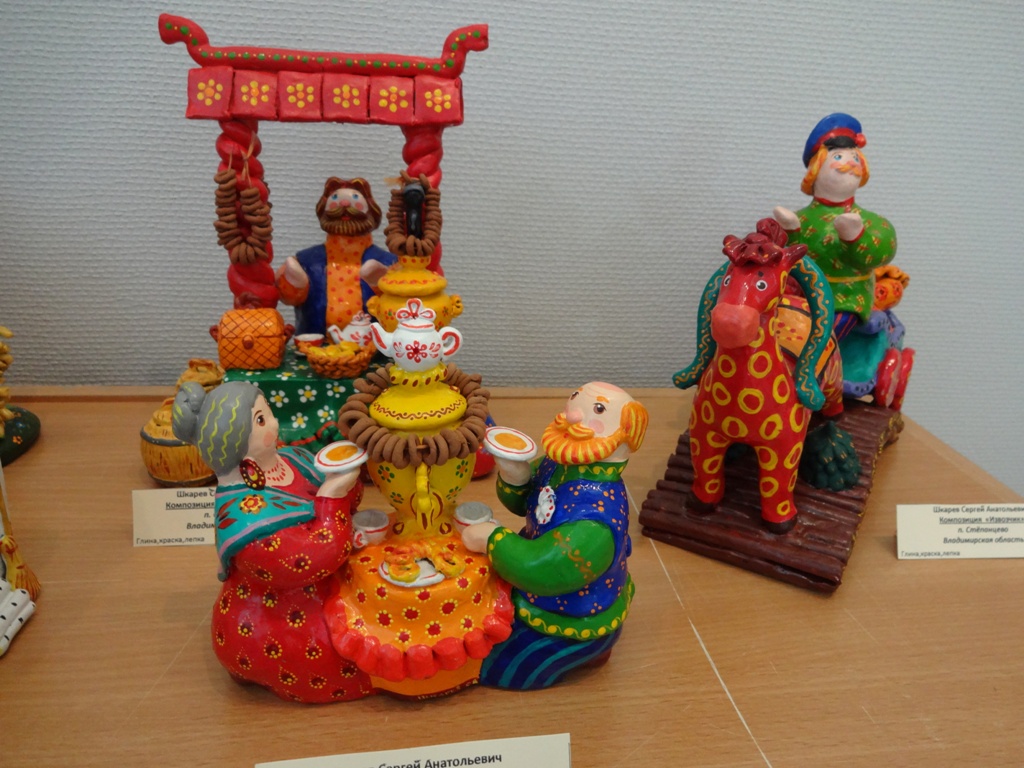 Естественно были разные игрушки из глины. В рамках фестиваля проходили мастер-классы по созданию жбанниковской глиняной игрушки, глиняной свистульки. Открытием для меня стали работы Шкарёва С.А. (п.Степанцево Владимирская обл.)