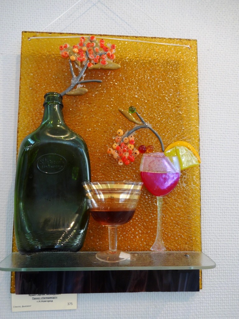Я на эту выставку ходила чтобы посмотреть изделия из цветного стекла, но, к сожалению, работ было представлено очень мало. Фото изделий из цветного стекла нижегородского мастера Кузина С.Л.