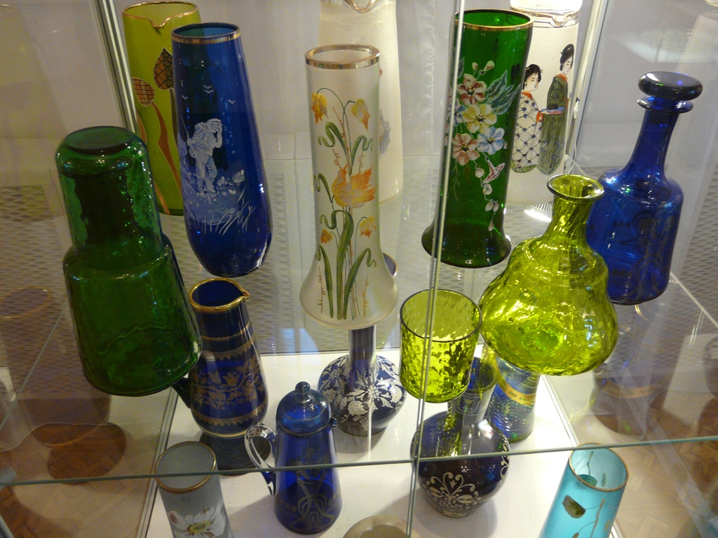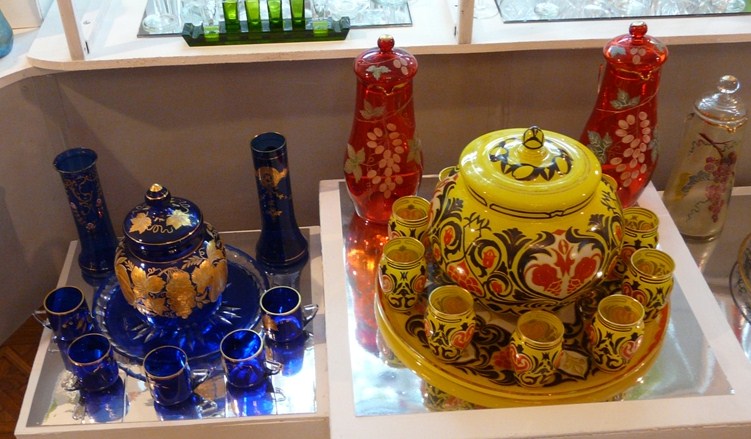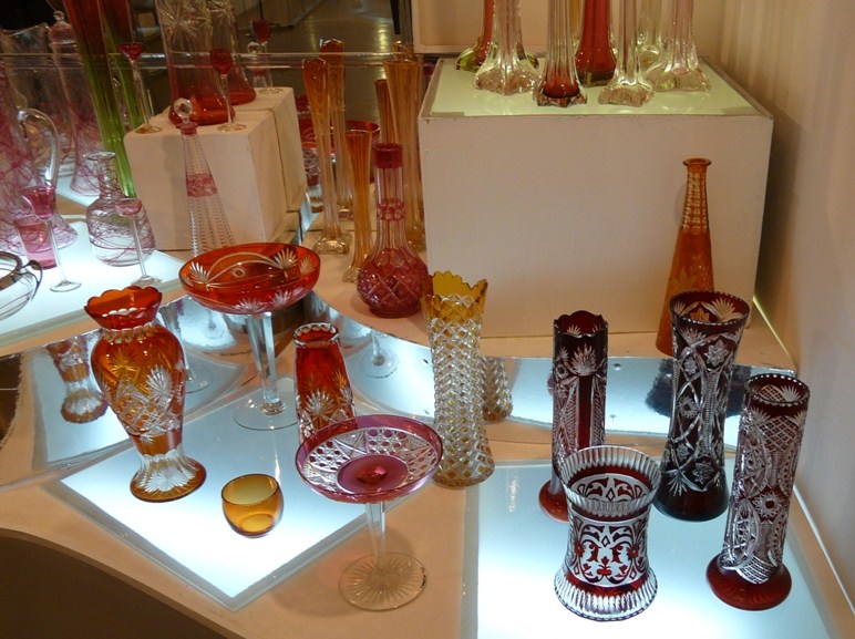 Представленные на выставке экспонаты, а их более 800, удивляют многообразием форм, цветовых оттенков, способами художественной обработки – это вазы для цветов и для фруктов, крюшонные наборы, блюда, бонбоньерки, парфюмерные флаконы, бокалы, рюмки…