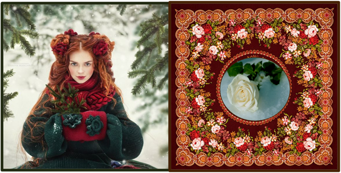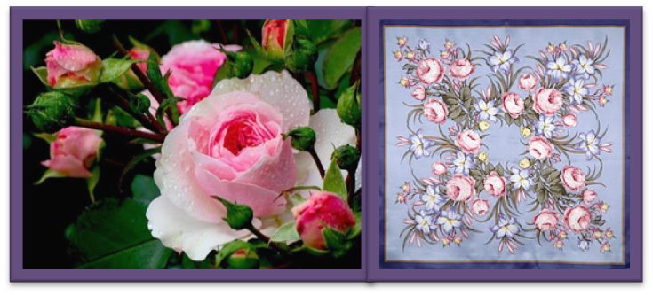 На платках Елены Жуковой "Признание" и Надежды Слащёвой "Цветочная сказка" я увидела золотые розы. В них можно бесконечно всматриваться и восхищаться талантом художниц.