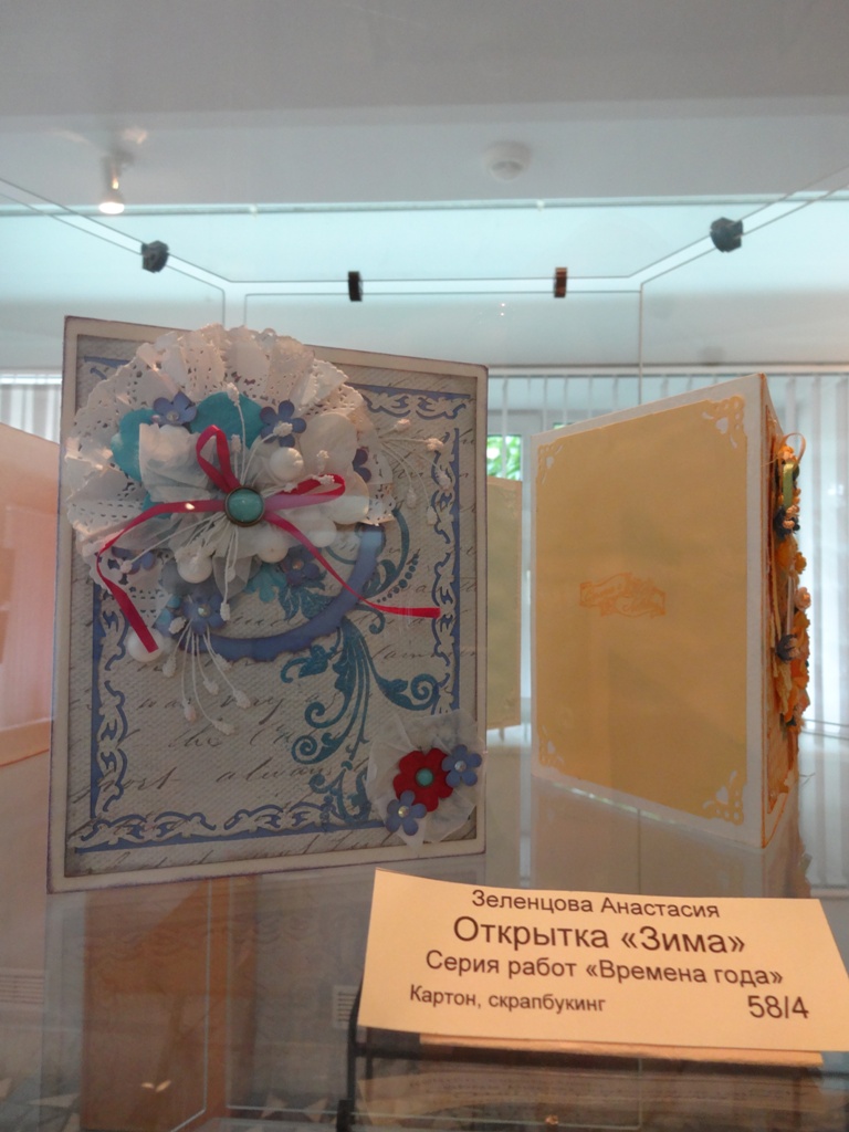 Понравились и вдохновили на создание своих открыток работы Зеленцовой Анастасии. В рамках проведения выставки Анастасия проводила интересный мастер-класс по скрапбукингу.