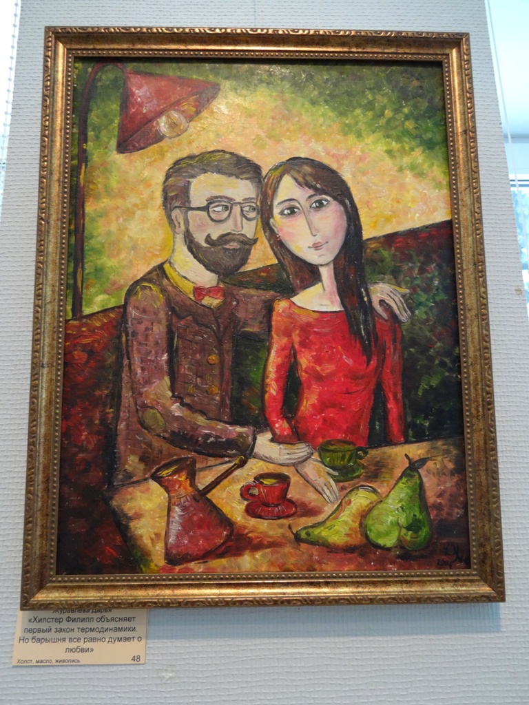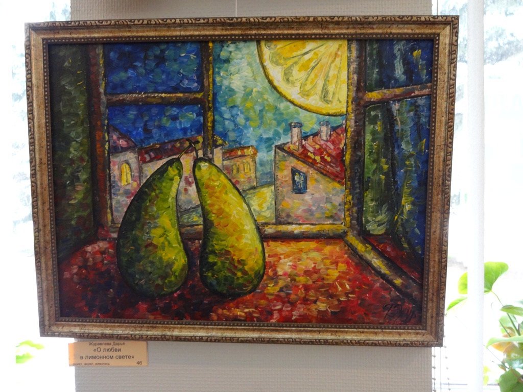 Картину "О леденцах и их видах" написала Анна Кучеренко. Ещё фото нескольких её работ с выставки.