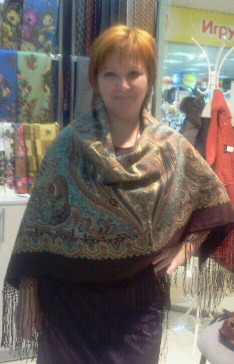 , Лена ! По такому фото трудно сказать, как - то бледно на вас смотрится ! Мне очень нравятся рыжие платки на вас,- вот Разводной вам очень здорово, зелёные вам хорошо.