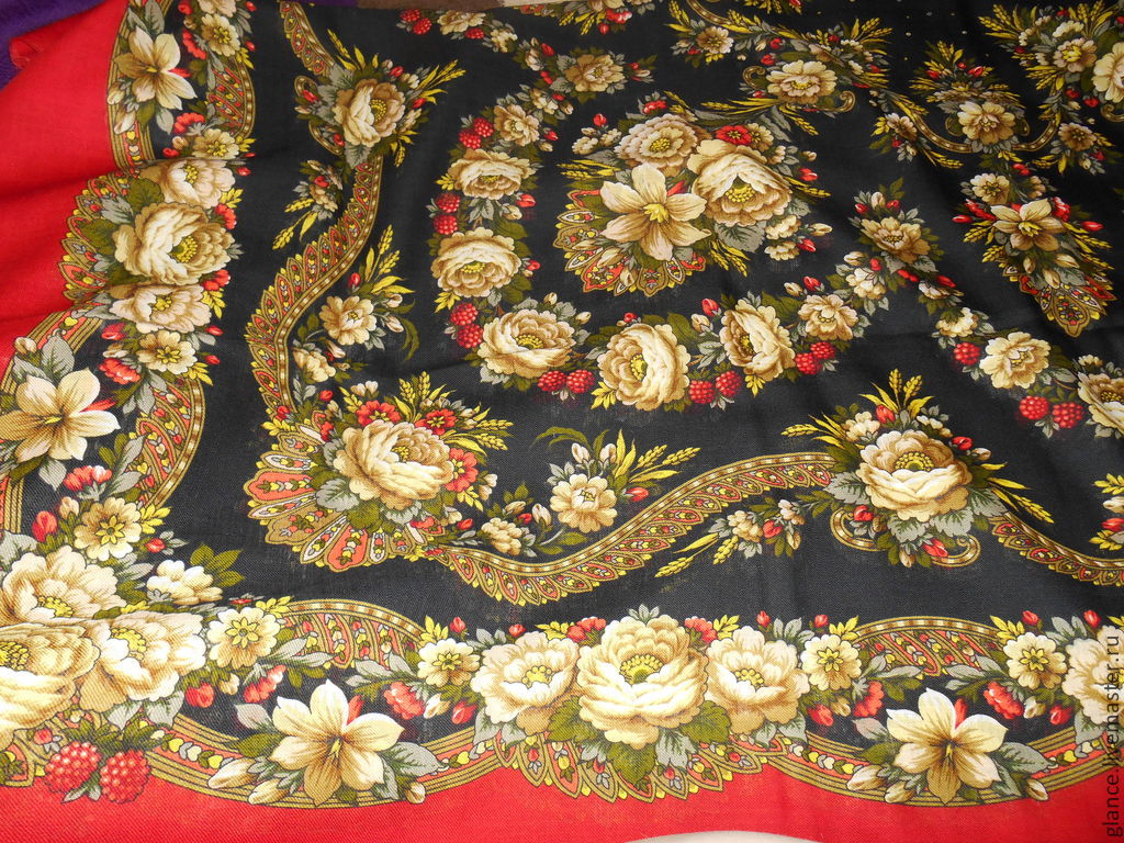Шаль "Мороз и солнце" (авторский колорит) - производит очень хорошее впечатление, мягкие краски, легкие узоры, сразу подпадаешь под её очарование. Ткань тонкая на ощупь, мне показалось, что тоньше "Таинственного вечера", но при сравнении ( с продавцом) оказалось, что не тоньше, бахрома белее каймы, но в глаза не бросается. Думаю, что будет пользоваться спросом, а форумчанки, конечно, отдадут должное этой замечательной шали. В тот же вечер рассмотрела "Ягодку", цветы и колорит показались похожими с "Мороз и солнце".
