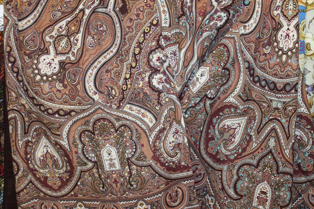 Действительно, платки повергли в шоковое состояние - вышла в раздумьях "вот если бы к носу Ивана Ивановича приставить губы..." ну и далее по тексту. Весь маразм положения еще в том, что те платки, что отвечают моим предствалениям о кайме "вишневого цвета" все с ужасным браком - непрокрасы, потертые нитки, которые, конечно, скоро расползутся в дыры. Тот, что более коричнево-сливовый (или баклажановый) по качеству хорош, отеннки рисунка мне понравились даже больше, но цвет каймы