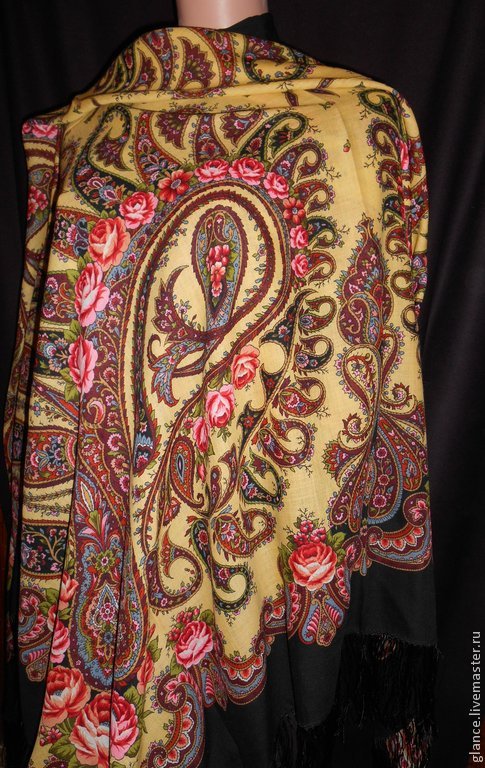 А бахрома почему вязанная?!!! Это что - новый вариант бахромы для шелка от мануфактуры? Или самодеятельность? Они, шали из шелков, и так-то не держатся, а с тяжелой бахромой вообще свалятся сразу...