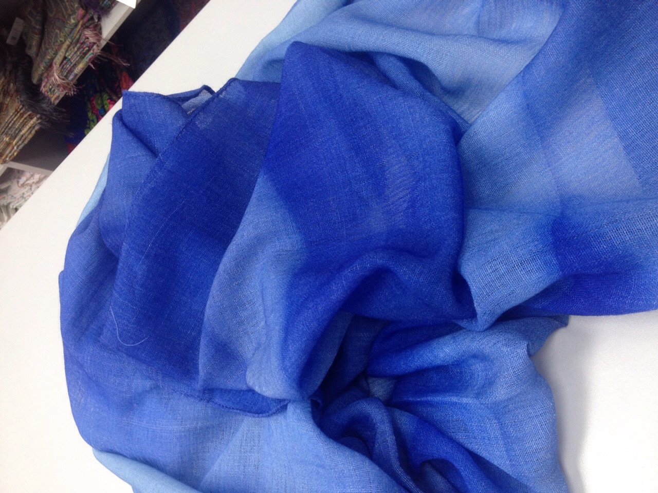 В итоге, после 1,5 часового хождения по магазину (магазин большой), рассматривания, ощупывания и прикидывания, был куплен отрезной купон большого итальянского шелкового платка, по цене сопоставимой с ценой шелковой шали.