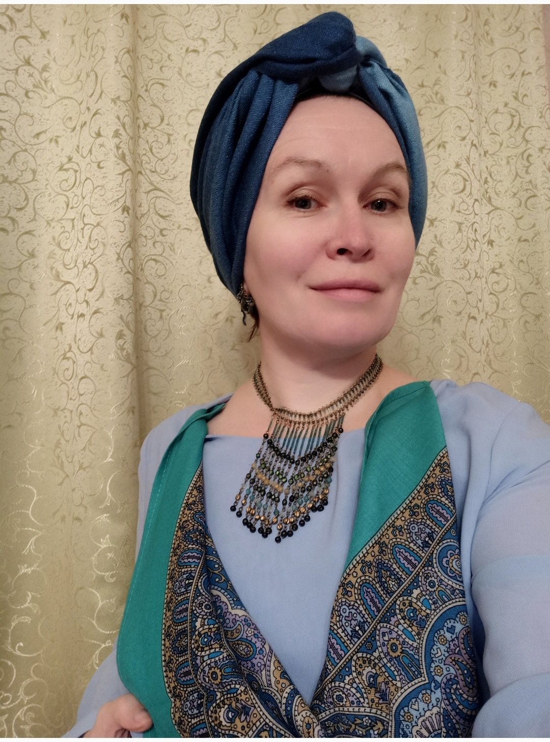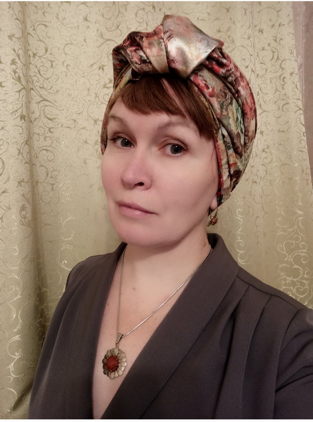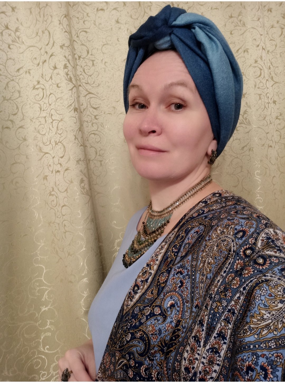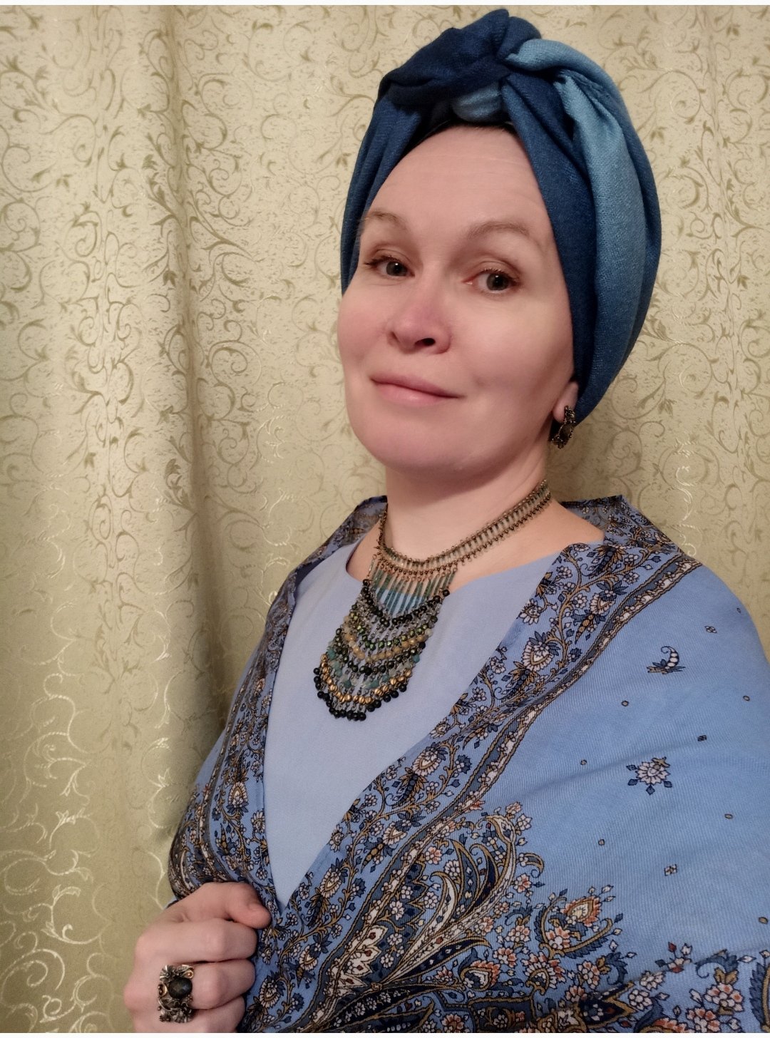 2. Держатся на голове всяческие конструкции по-разному - шерсть обычно без проблем, шёлк иногда просто можно пришпилить тонкой булавкой в 1-2 местах. Хлопок лучше всего, не сползает, подоткнул краешек и готово.