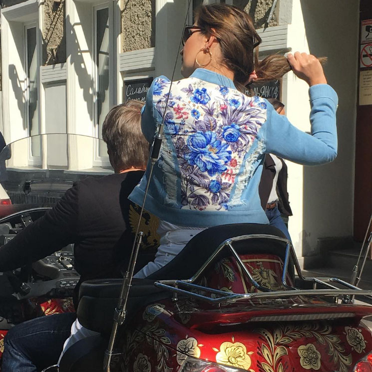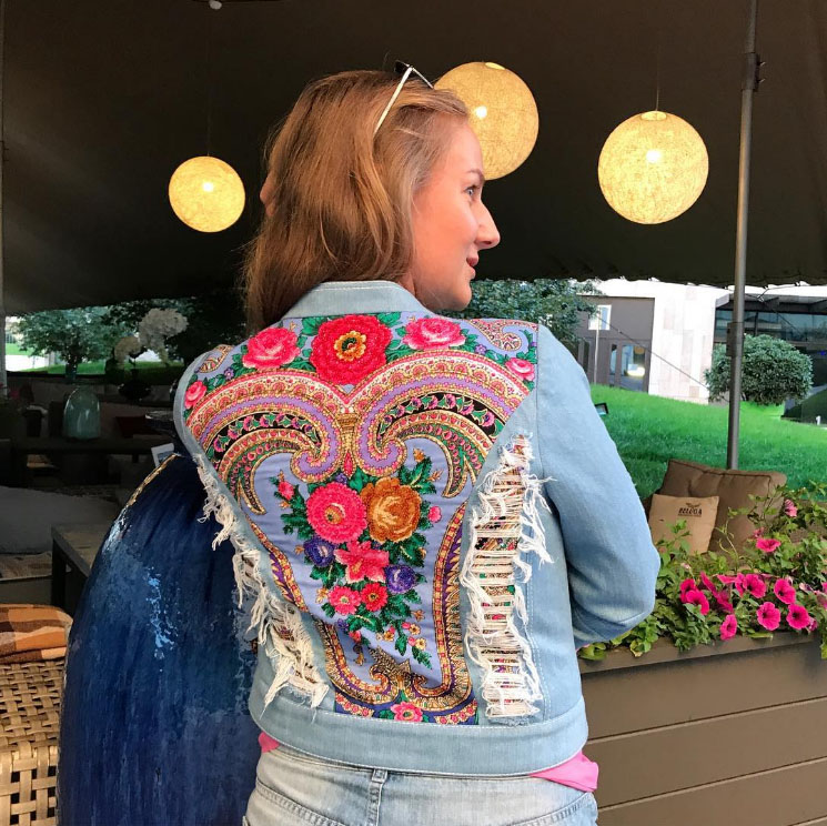 Внутри подкладка шелк, на джинсовых курточках рисунок платка по спинке расшит бисером.