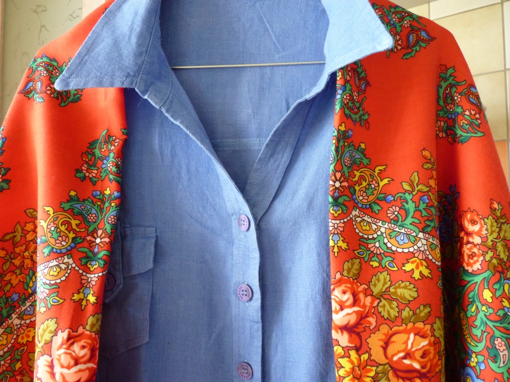 Я когда этот костюм увидела, сразу подумала про Июньское Утро, а потом и другие шали подтянула. А уже когда накидывала шали на костюм и по фото мне больше на душу легло сочетание с Карнавалом.