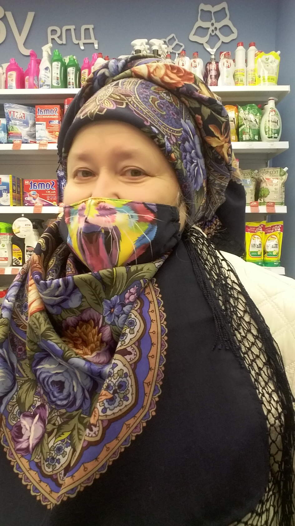 Натик, понимаю вас очень! Вот и на меня карантинные меры повлияли. Я не могу снять маску на улицу, у нас обязательно ношение. Но на совершенно безлюдной улице (а такие есть) могу снять, пока никого нет и отдышаться. Шаль на голове эти движения- снять-надеть- не позволяет делать. Поэтому теперь даже, если холодно, надеваю берет или шляпку, а шаль в намотку. Но стала носить шали, а долго не могла себя заставить - так казалось странно одеться, нарядиться и надеть вдруг маску. А теперь пришла к тому, что однова живем, если народ не удивлю элегантностью (в маске, по-моему, это сделать невозможно), то хоть себя порадую шалью.