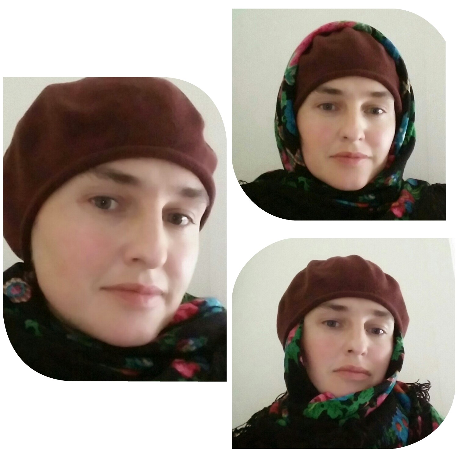 Я показала, какой берет обычный и 2 варианта как ношу с платком.