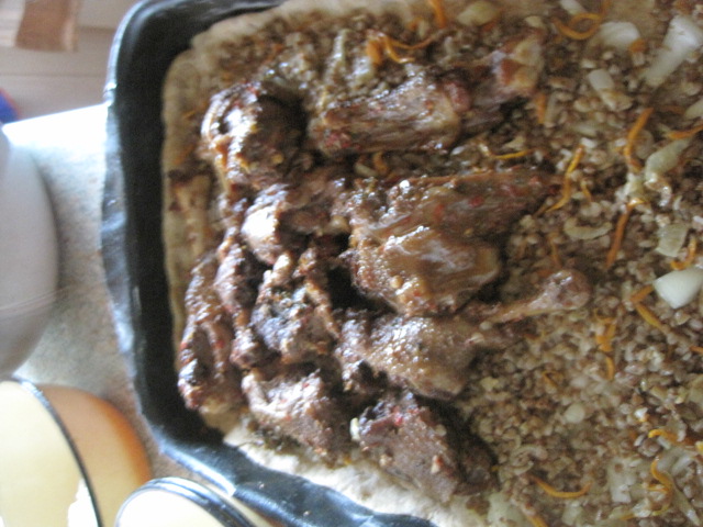 Чудесный пирог с гусем и гречкойзакрываем тестом,и в духовку.