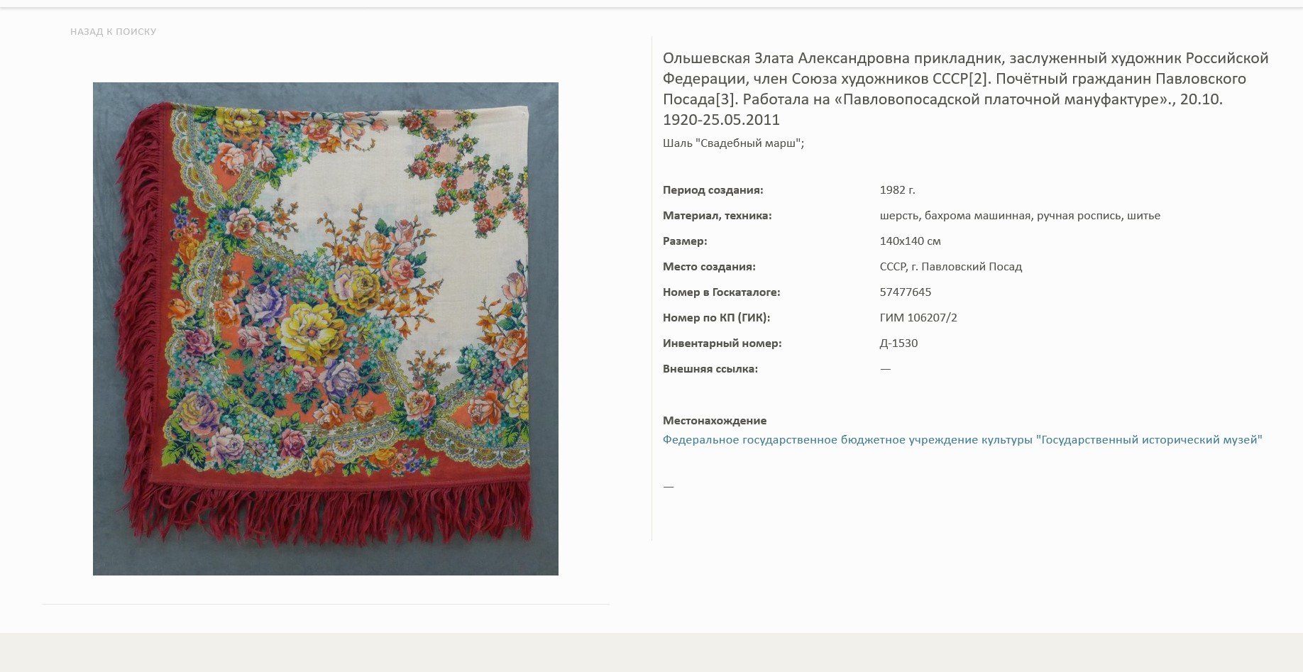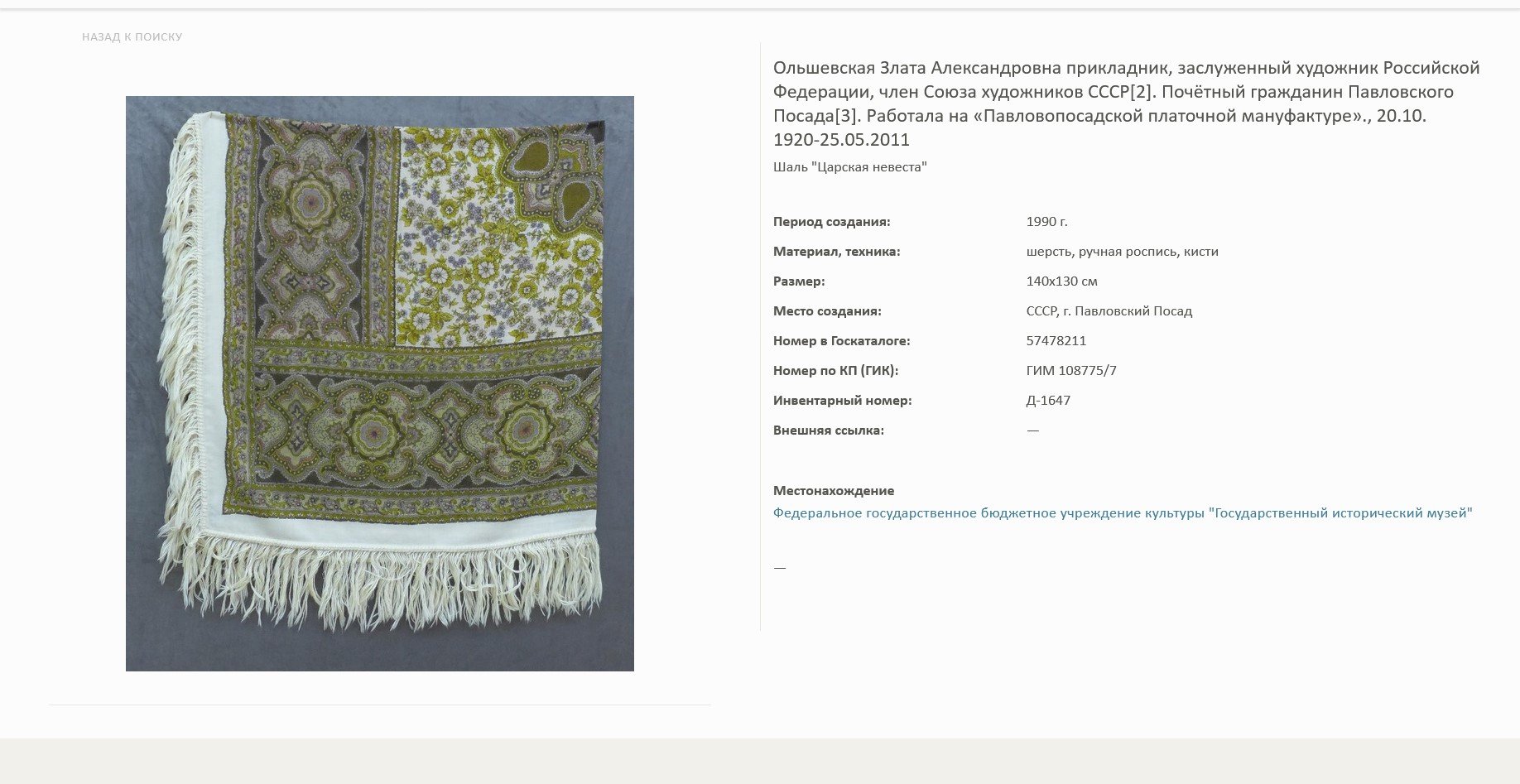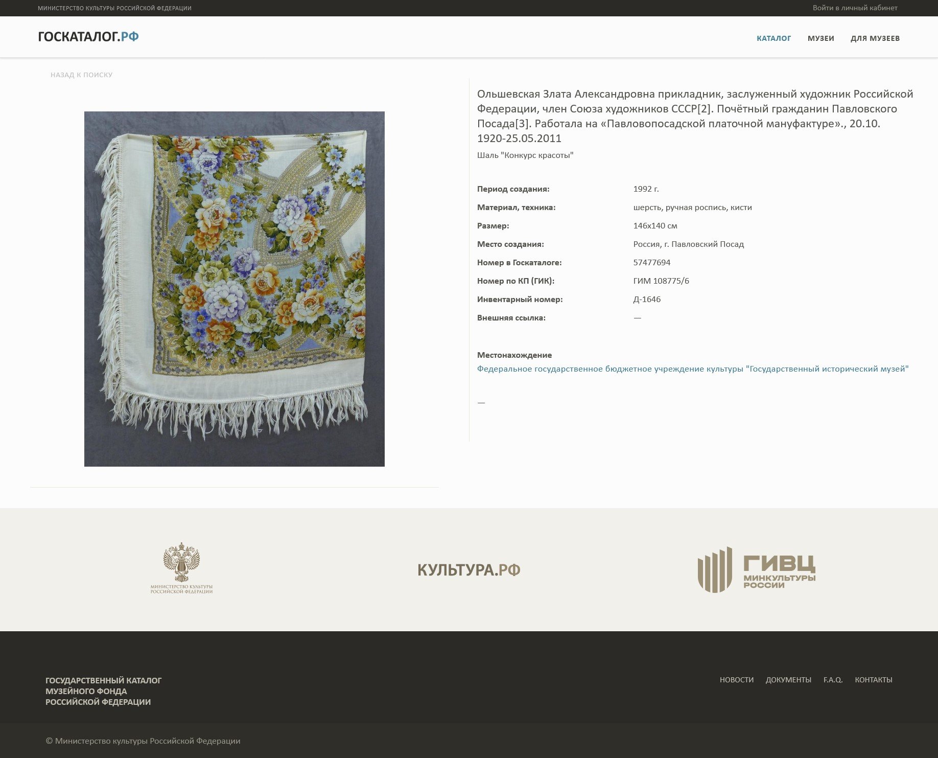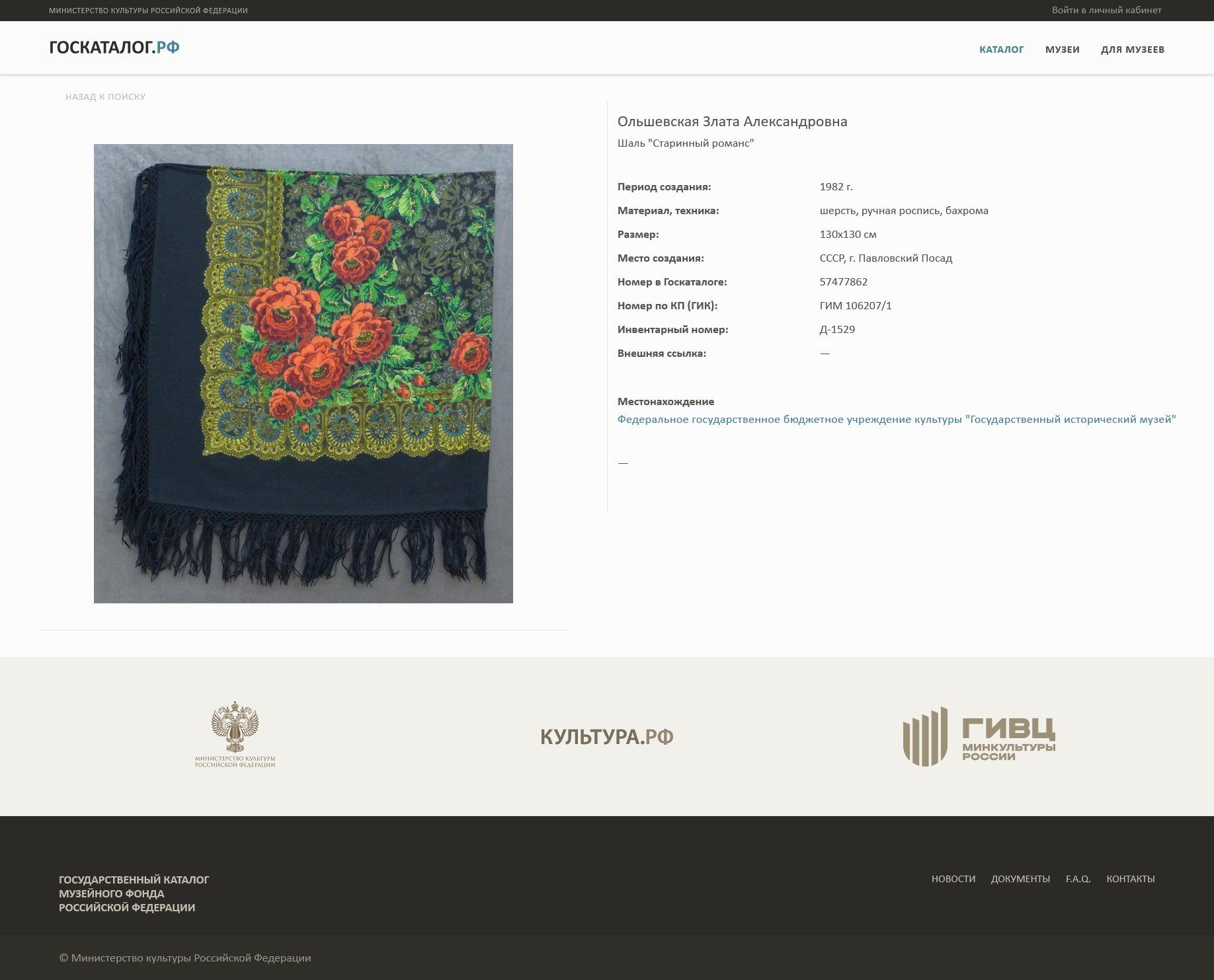 В Госкаталоге появились рукописные шали Златы Александровны Ольшевской из их коллекции!