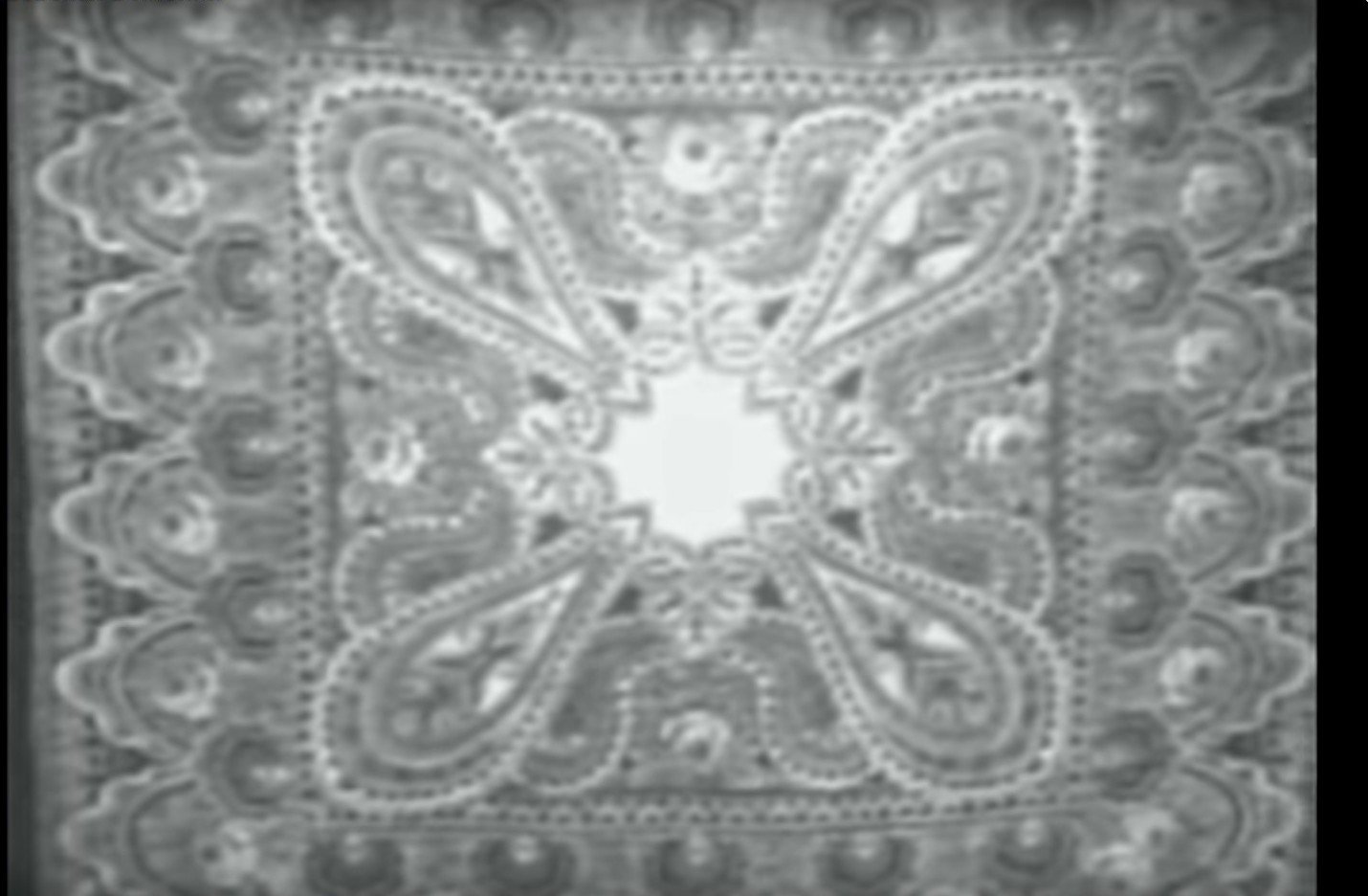 Поискала этот платок в ролике о поездке З.А. Ольшевской в Японию. Там она упоминает платок "Подмосковная краса" из серии "Русская старина", и камера в это время показывает вот этот платок (простите за качество изображения).