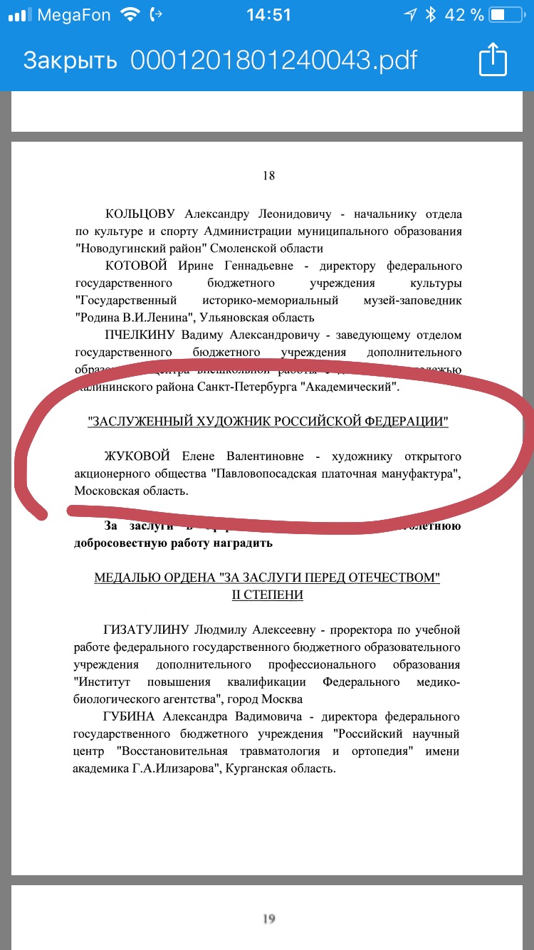 Елене Жуковой указом президента присвоено звание заслуженного художника России. Указ от января, но узнали только сегодня!