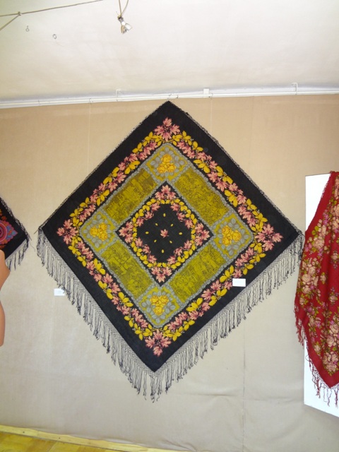 Как и обещала ранее, размещаю в этой теме свои фотографии с выставки. Заранее предупреждаю и приношу извинения за то, что цвета шалей, платков и, возможно, картин, искажены. Условия съемки не позволяли сделать фотографии более качественными, хотя об искаженной цветопередаче я узнала только дома при просмотре фоторгафий. Очень расстроилась этим фактом.