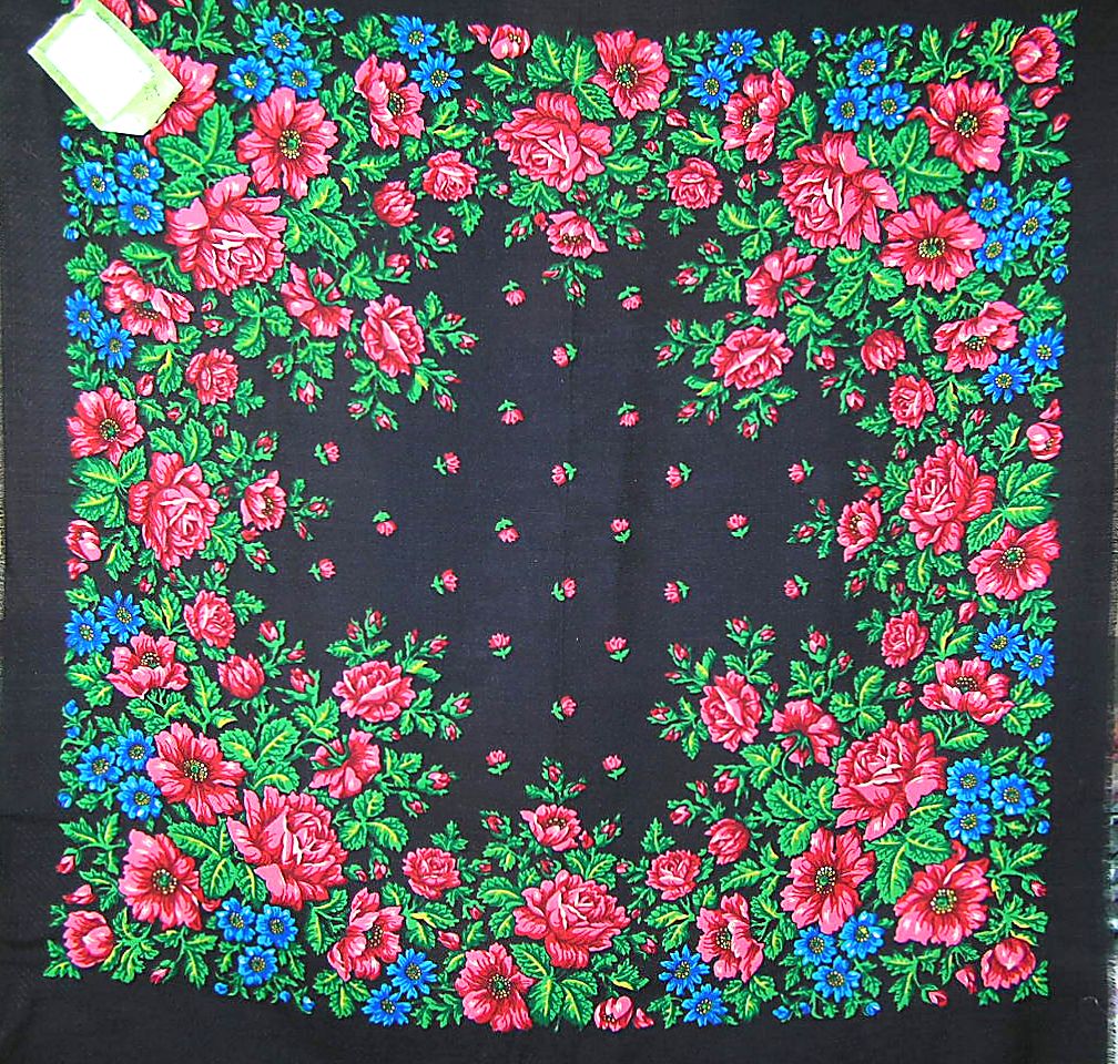 Буквально на днях шла с работы, а передо мной шла женщина в таком платке поверх шубы. Я как издалеке цветы яркие увидела - догнала, чтобы идти поближе, и всю дорогу разглядывала цветы на платке. А издалека они смотрелись как-будто объёмные - очень красиво.Синяя Птица писал(а):А у меня сегодня вот какая находка: