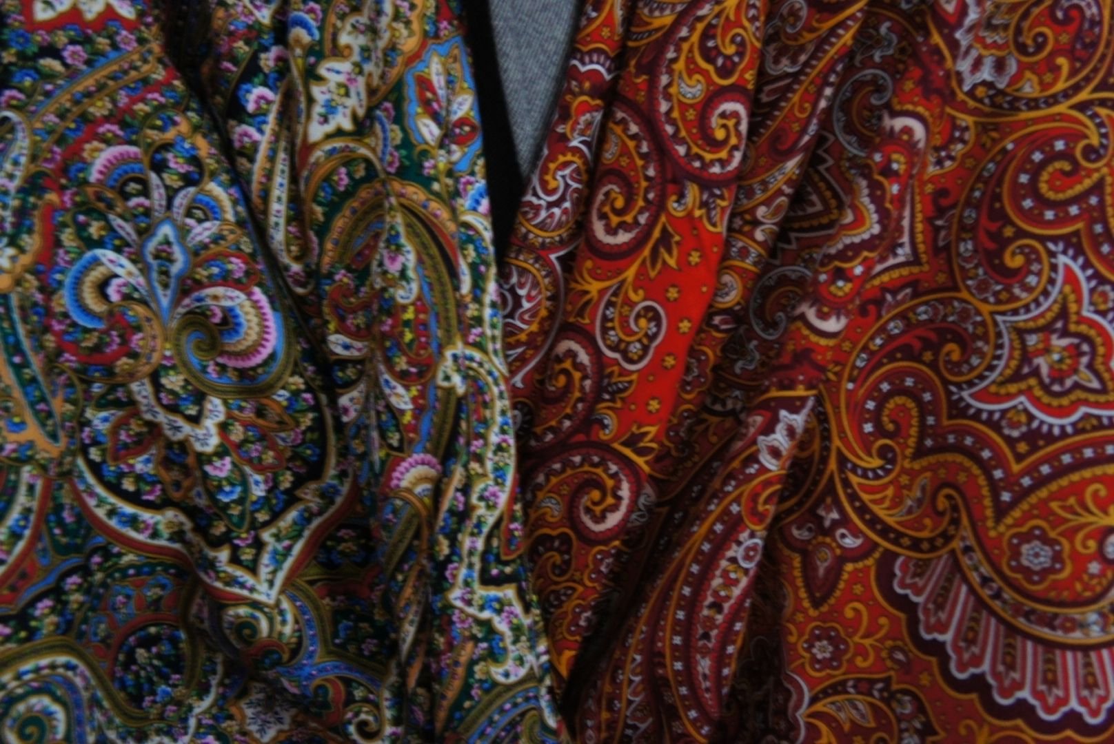 По фото видно,что и оттенки бордового теплее,в старой чуть в свекольнее.Листики более темного оттенка хаки,и по краю завитки в новой в хаки,в старой в серый хаки.Розовый в медальонах в новой чуть темнее и лососевый по оранжевее.Ну и конечно-же серо-синий в медальонах,намного темнее.В целом шаль смотрится темнее.Я бы сказала это сказки темного леса)