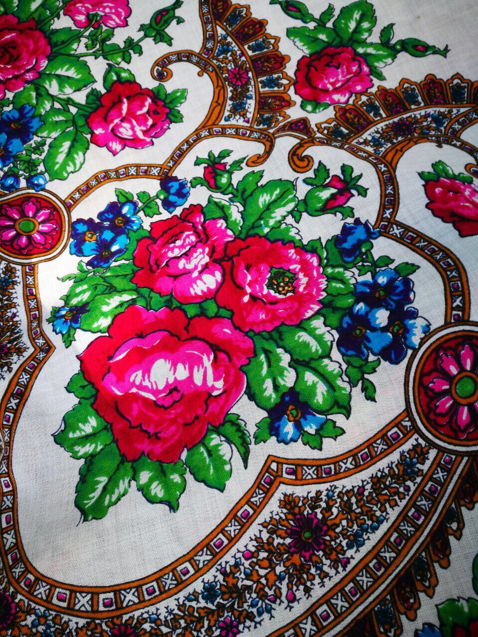 у меня было впечатление ручной набойки, но оверлок смутил ...очень красивый платок!!!