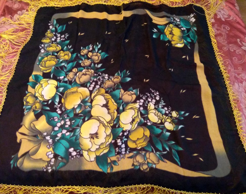 настроена расставаться с этим платком, состояние очень хорошее, размер 95 * 95 см, не могли вы мне помогать ориентироваться по цене, спасибо