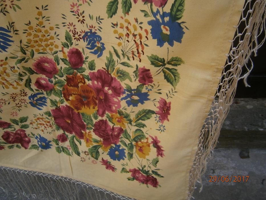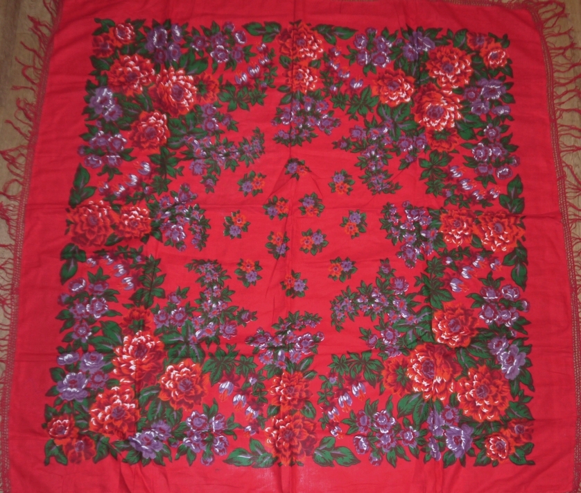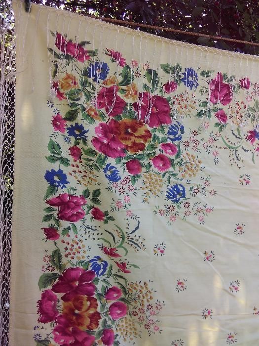 Винтажные хлопковые в случае качественной печати тоже очень хорошо смотрятся. И очень приятны в носке. Нашла ещё одну шаль в своём домашнем архиве виртуальных фотографий