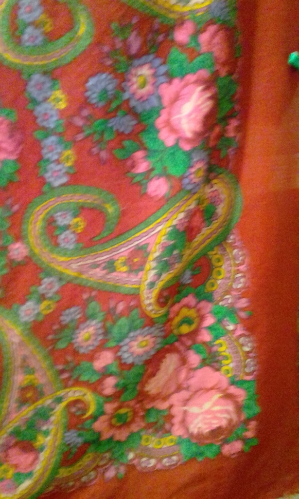 Здравствуйте, дорогие форумчанки! Нужна помощь в опознании. Что за платок? Искала в бабушкином сундуке, но не нашла.Или просмотрела. Размер-110,шерсть,осыпка. Цвет каймы и фона-красный.Извините за качество фото