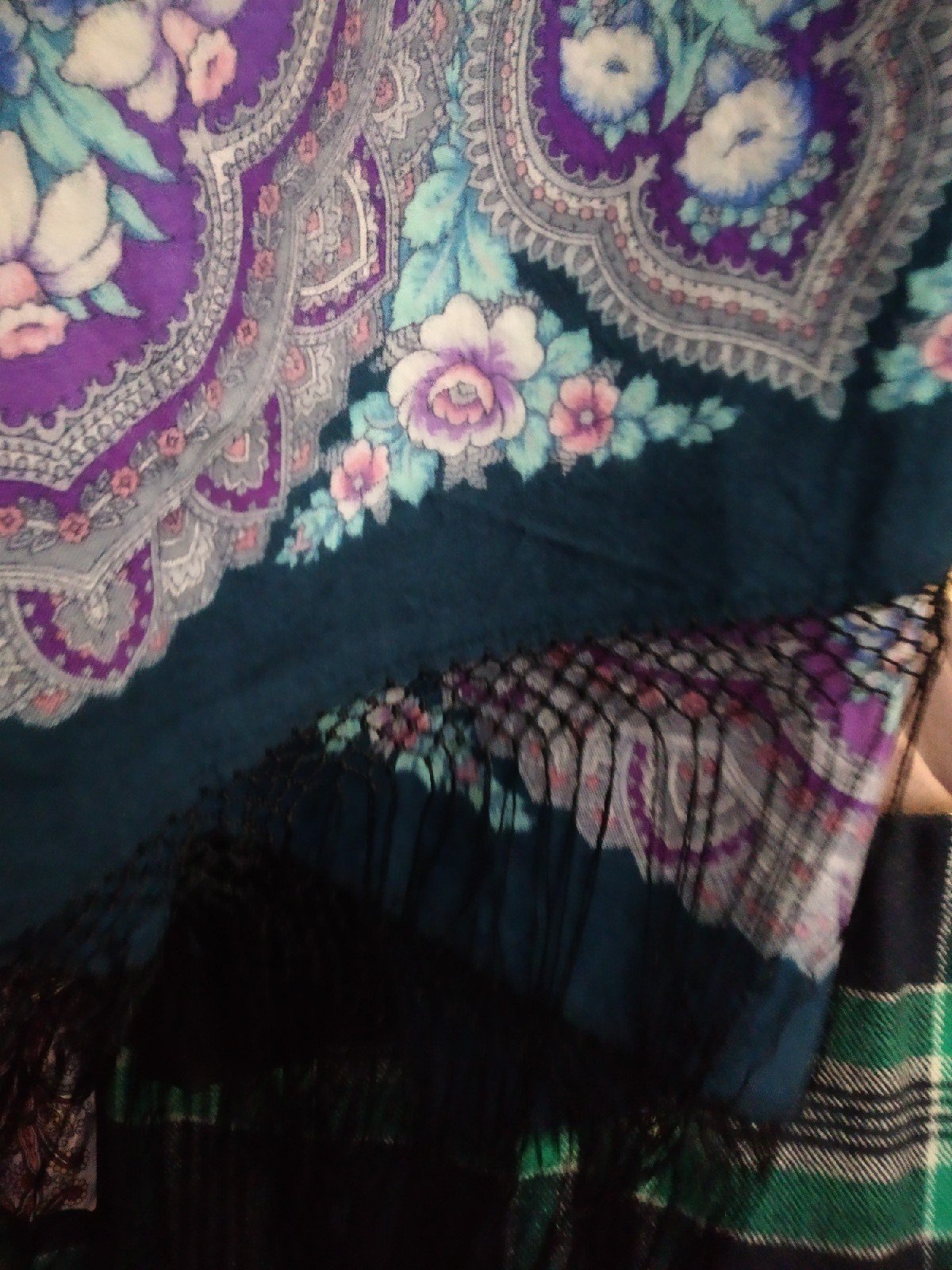 Дорогие Сударыни! Обращаюсь за помощью клуба. Шаль я опознала, конечно, но вот такого колорита я не видела. Встретилась она мне на Вернисаже в Измайлово. Сразу скажу, что на фейк не похожа. Полноценная шерстяная шаль с плетеной бахромой. Кайма и середина очень темно зеленого цвета. Видимо постирана. Цвета как бы припыленные. Можно сделать скидку на полинялость. Но фиолетовые медальоны и темно зеленый грунт вроде бы не встречался. Кто знает, видел, поделитесь.