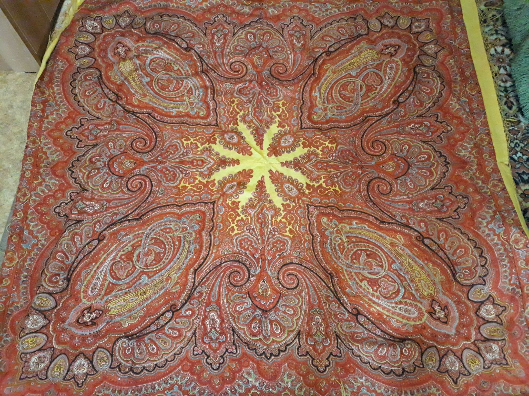 Здравствуйте!помогите пожалуйста опознать,хлопковая шаль,размер где-то 150×150 ,вроде ручная набойка