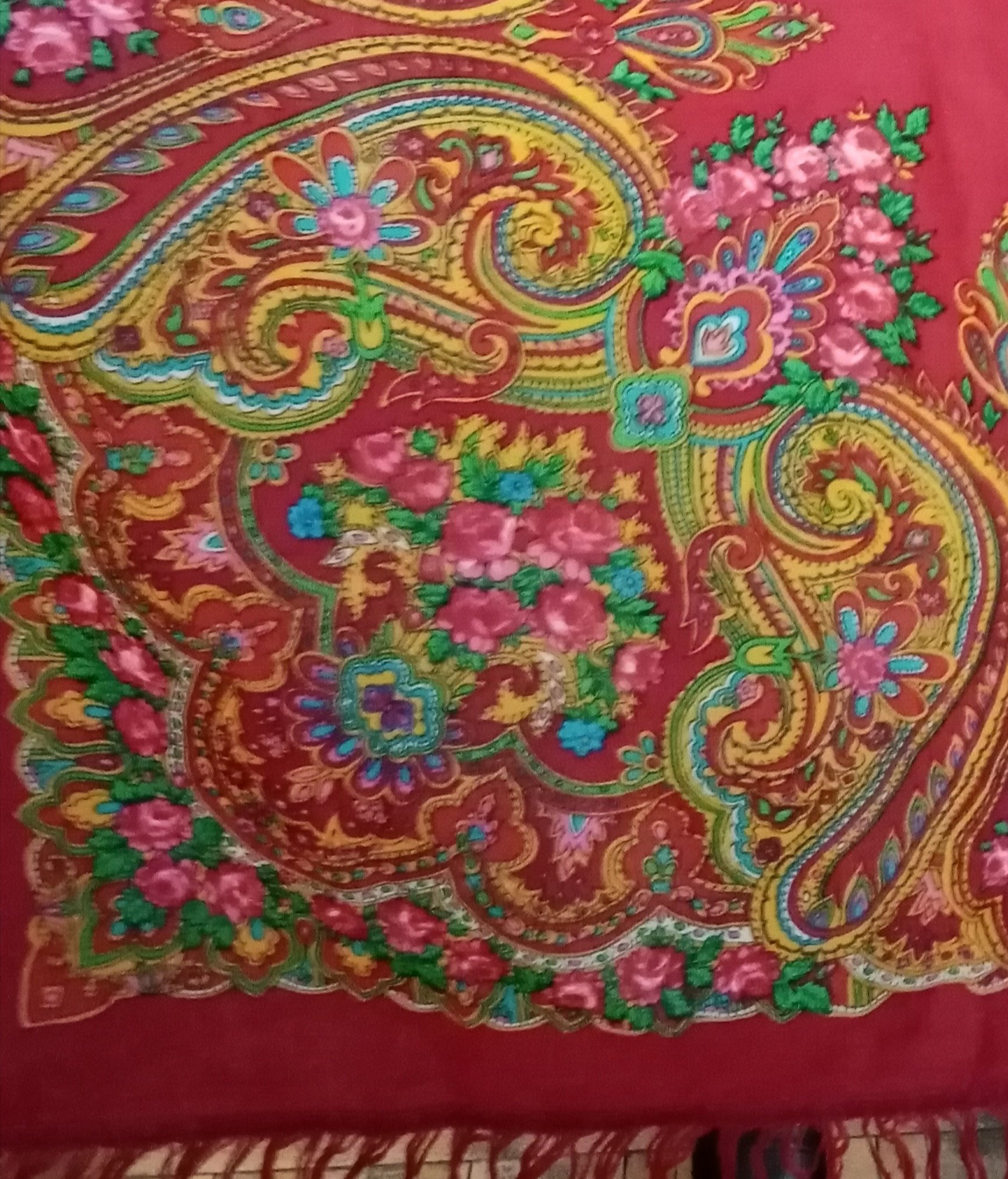 Девочки, добрый вечер! Помогите опознать платочек. На работе у коллеги отыскался давнишний платок, кажется размер 125 с шерстяной бахромой