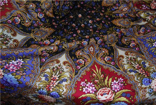захотелось мне больших ярких цветов на черном фоне, буйной зелени и отсутствия голубых цветочков. Получила я сегодня Святочный 12-26. Такой же восторг я испытала, получив Княжеский -13. Зелень изумрудная, розы-рубиновые и аметистовые.