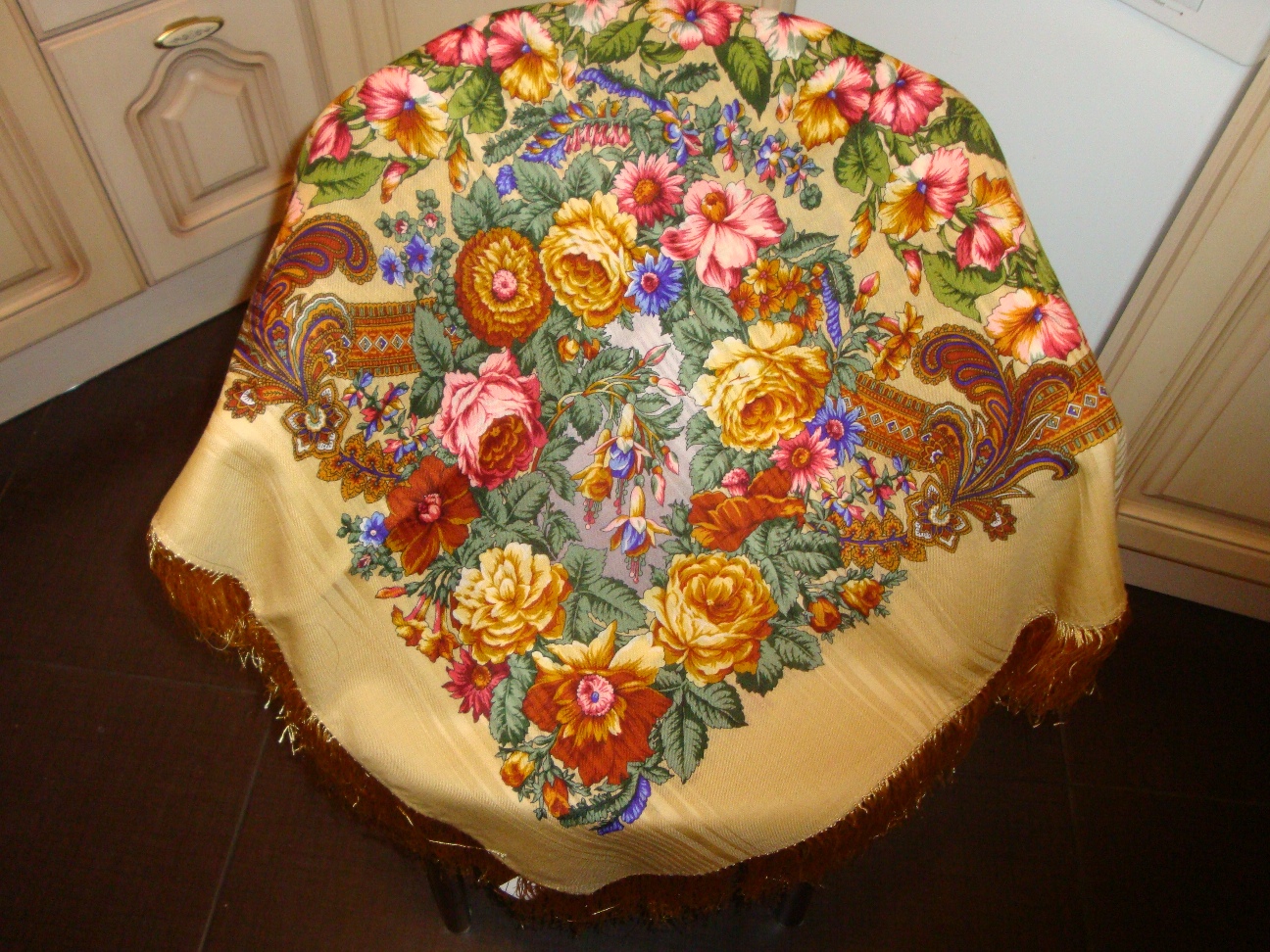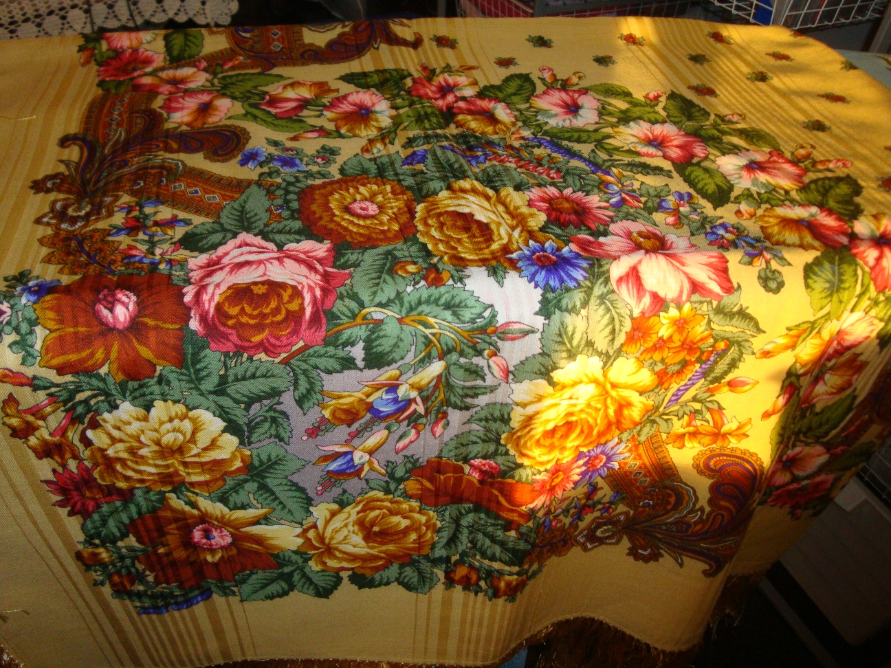 Хорошо драпируется.Бахрому я бы другую сделала.