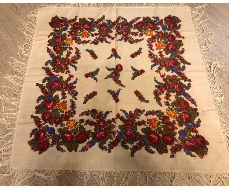 Добрый день! Мне достался вот такой вот платочек. Это наверное даже шаль, по размеру она приблизительно полтора метра. Меня интересует, является ли это изделие павловопосадским платком? И если да, то что за рисунок и какой примерно возраст. Этикеточек никаких к сожалению нет. Заранее большое спасибо!